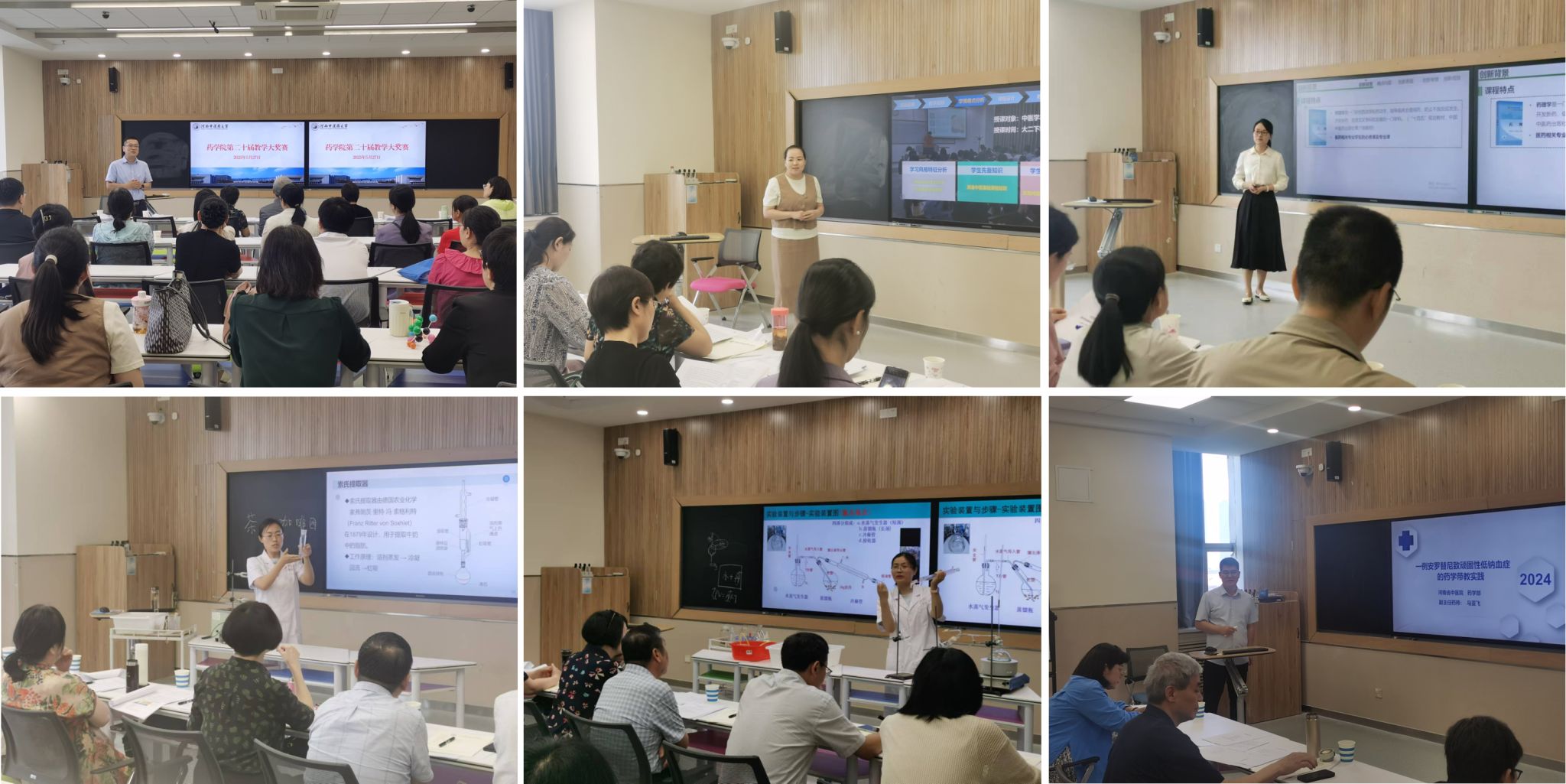 5月13-14日、6月5日,在A621、A617、A614智慧教室举办了药学院第二届实践教学竞赛,本届实践教学竞赛分为实验教学竞赛和实训教学竞赛,经各教研室、实习基地初赛选拔,择优推荐了16位教师参加学院复赛。参赛教师同样精神饱满、倾情投入,在规定的时间内完成了实践教学说课、内容讲授及操作示教等环节,参赛教师将理论知识与实践技能紧密结合,展现了完备的教学能力和深厚的专业素养。