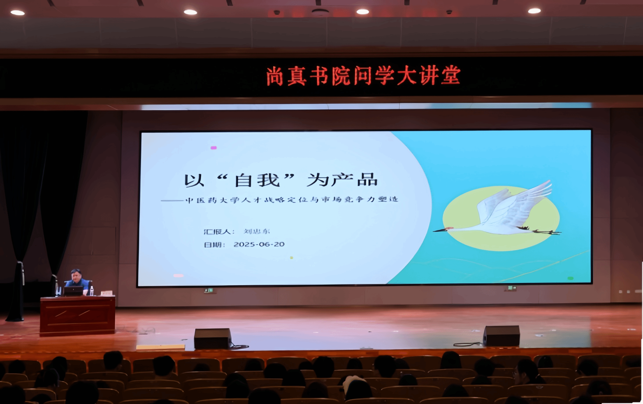 讲座中,刘忠东以“自我产品化”为核心,提出“每个人都是时代的‘道地药材’”。他倡导学生运用SWOT分析、波特五力模型等工具,提炼个人“核心卖点”,构建“经典传承力+现代融合力+场景解决力”的能力架构。在职业定位上,刘忠东建议学生构建“不可替代性标签”,可深耕“经方传承人”等新赛道,融入国家战略需求。互动环节,针对学生提问,刘忠东以企业跨界转型经验回应:“真正的竞争力在于始终保持‘空杯心态’,人才成长需经历市场锤炼。”多名学生表示,通过讲座深刻认识到,需将“大医精诚”的专业追求与“精准对接时代需求”的市场思维相结合,在传承中医经典的同时,以创新视角探索中医药在慢病管理、智慧医疗等领域的应用场景。