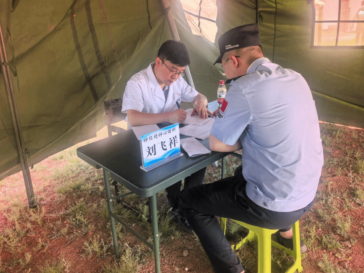针对边境民警因长期高强度执勤多发的关节痛等慢性劳损性疾病,王庆波发挥中医“针药并用”特色优势,通过精准针灸配合个性化中药方剂辨证施治。在珠恩嘎达布其口岸,他还针对普遍存在的过敏性鼻炎患者,应用一附院制剂“外敷寒咳散”现场调配膏药进行冬病夏治三伏贴治疗,以精湛医术让众多民警的病痛得到缓解;针对高原地区高发的湿疹、日光性皮炎等皮肤病,陈绍斐依据“证素辨证”理论精准用药,医疗组携带的一附院自主研发的黄连紫草膏、如意金黄膏等纯中药制剂有效缓解了民警的皮肤困扰;面对边境民警高发的焦虑、抑郁等心理问题,刘飞祥以专业心理疏导技巧与耐心倾听为民警排解压力,同时结合中医特色疗法进行身心综合调理,还设计了针对性心理咨询调查问卷,已收集四百多例样本。