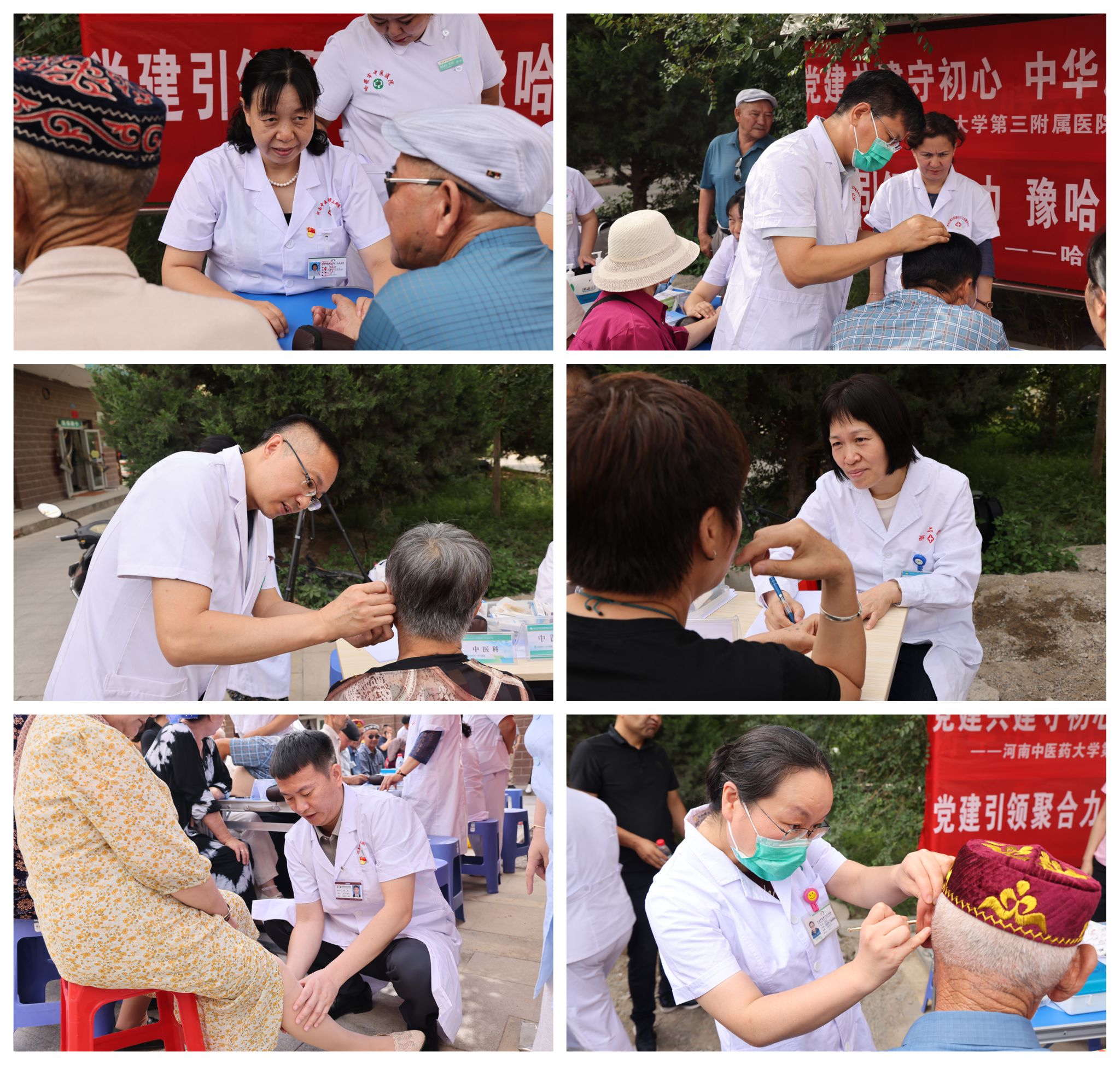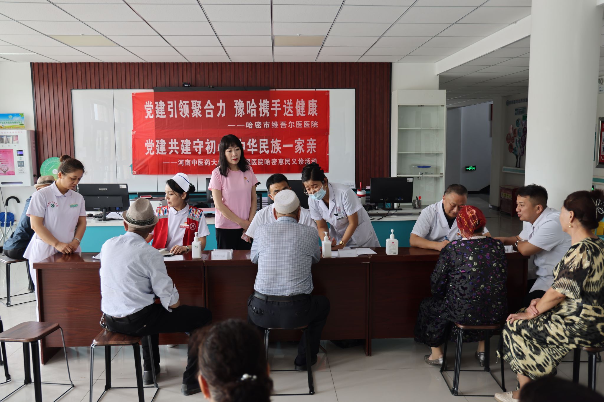 本网讯(文/胡兴旺 图/潘向昆)为全面贯彻新时代党的治疆方略,认真落实第十次全国对口支援新疆工作会议精神,2025年7月16日,三附院与哈密维吾尔医医院20余名专家赴哈密市伊州区黑峰山社区卫生服务站、白石头乡卫生院联合开展了“党建共建守初心,中华民族一家”惠民义诊活动。