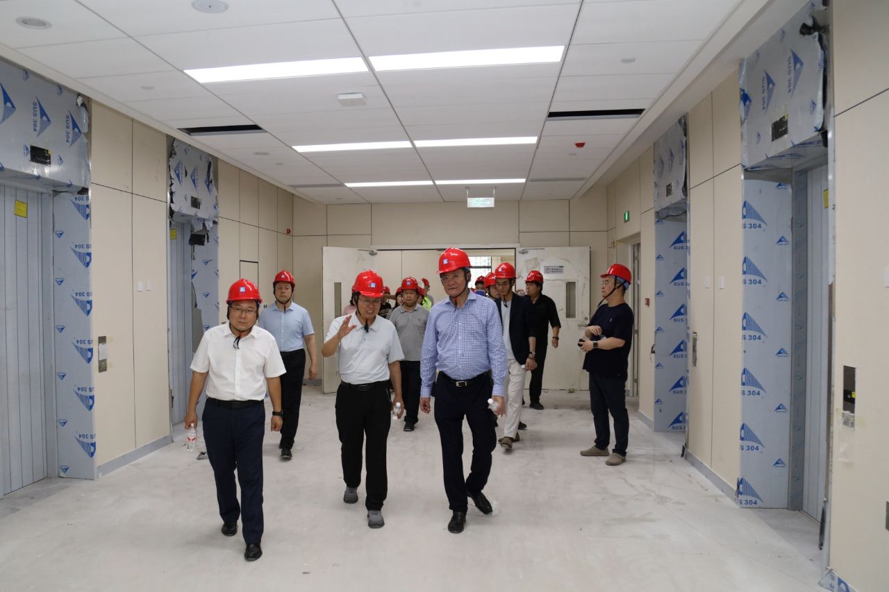 小暑大暑,上蒸下煮——雨后放晴的郑州,骄阳炙烤大地,空气湿热难耐。7月24日下午,高炬一行在院领导以及相关职能部门负责同志的陪同下,冒着酷暑来到项目医院调研。在上海中医药大学附属龙华医院河南医院内,各项工程建设已经完工,两台大型医疗设备正在安装调试;相关职能部门工作人员昼夜加班加点,为筹备开诊奋力冲刺。