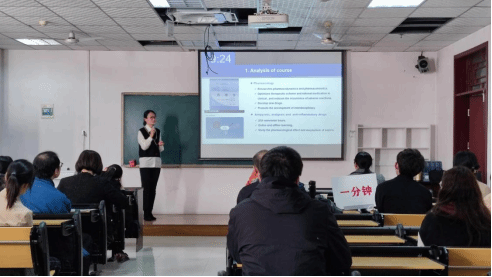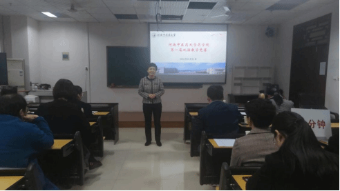 本网讯(文/图 刘庆普)为提升人才培养国际化水平,鼓励教师开展双语教学,提高药学院双语教学水平和质量,10月11日下午,药学院在教学实验大楼BS106举办了第一届双语教学竞赛。副院长纪宝玉主持竞赛活动,教学办主任朱鑫宣读竞赛规则,药学院部分教师到场观摩。