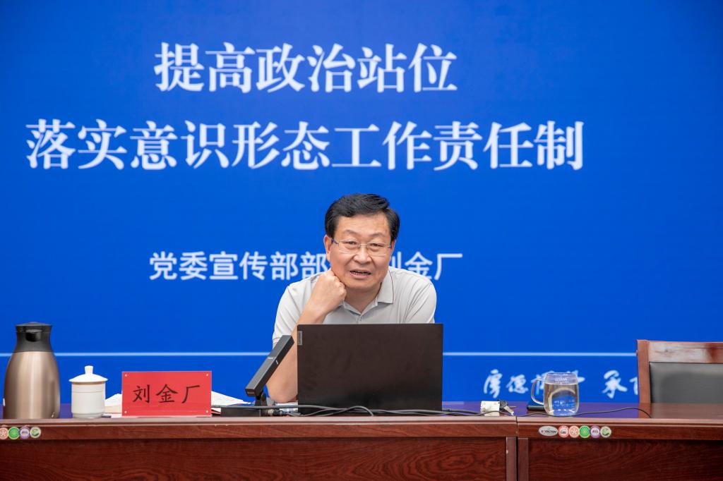 刘金厂作题为《提高政治站位,落实意识形态工作责任制》的专题报告。刘金厂强调,意识形态工作是党的一项极端重要的工作,尤其是高等教育院校,承担着“为党育人、为国育才”的职责和使命。意识形态是校内巡察工作的重要内容,要进一步强化基层党组织意识形态工作主体责任,加强学生思想政治教育和课堂思政建设,将意识形态工作纳入党建重要内容,牢牢掌握意识形态工作的领导权、管理权、话语权。