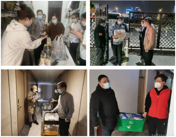 疫情突发,学生的学习、生活情况时刻牵动着学院领导班子的心。学院党委高度重视,迅速部署,学院党委副书记杨小红带领学工人员第一时间入住校园,与学子同吃同住。学院党委书记任献青召开疫情防控线上工作会,院长丁樱、副院长张霞通过电话,亲切慰问奋战在校园防疫一线的学工队伍,并详细了解、悉心指导学院疫情防控工作。