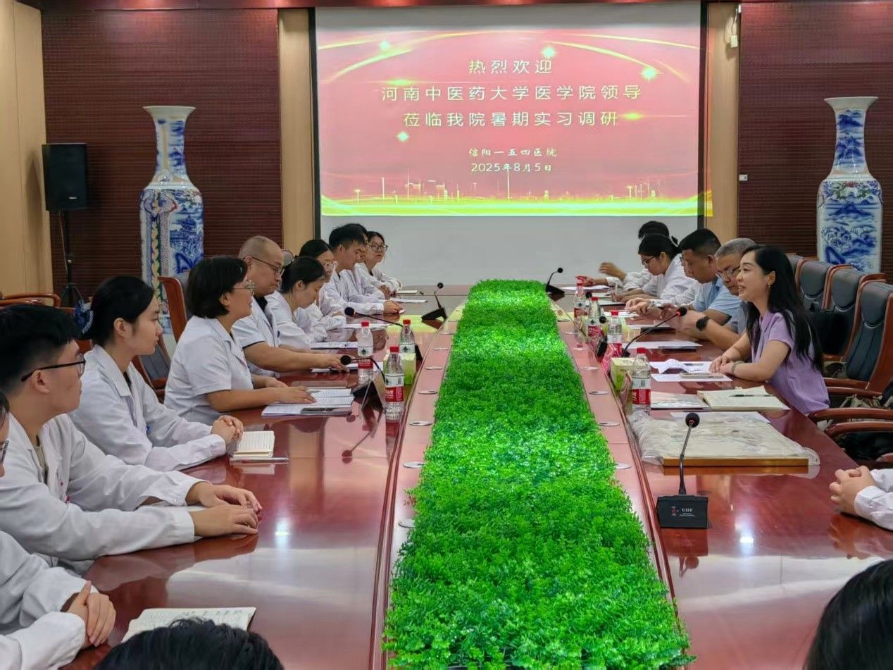 8月5日,信阳一五四医院副院长詹华刚、科教科主任商春燕以及在院实习生出席调研会。詹华刚介绍了该院作为信阳市“拥军医院”,在赓续红色血脉、厚植为军情怀等方面的独特历史基因,表示医院积极做好临床教学工作,构建了“多层次立体培养模式”,并通过带教与考核强化学生操作规范、提升应急处理能力,同时严格请假制度并关注学生心理,筑牢实习安全防线。