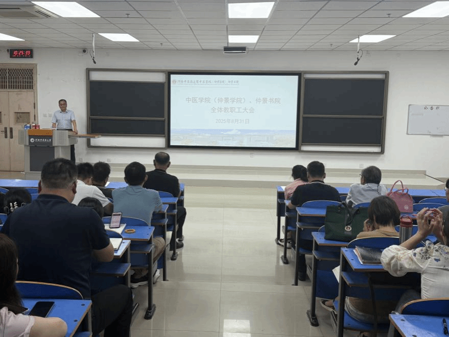 本网讯(文图/古豫蕾)2025年8月31日上午,中医学院(仲景学院)、仲景书院在教学实验综合楼三楼阶梯教室召开2025年度秋季学期全体教职工大会,120余名教职工参会。