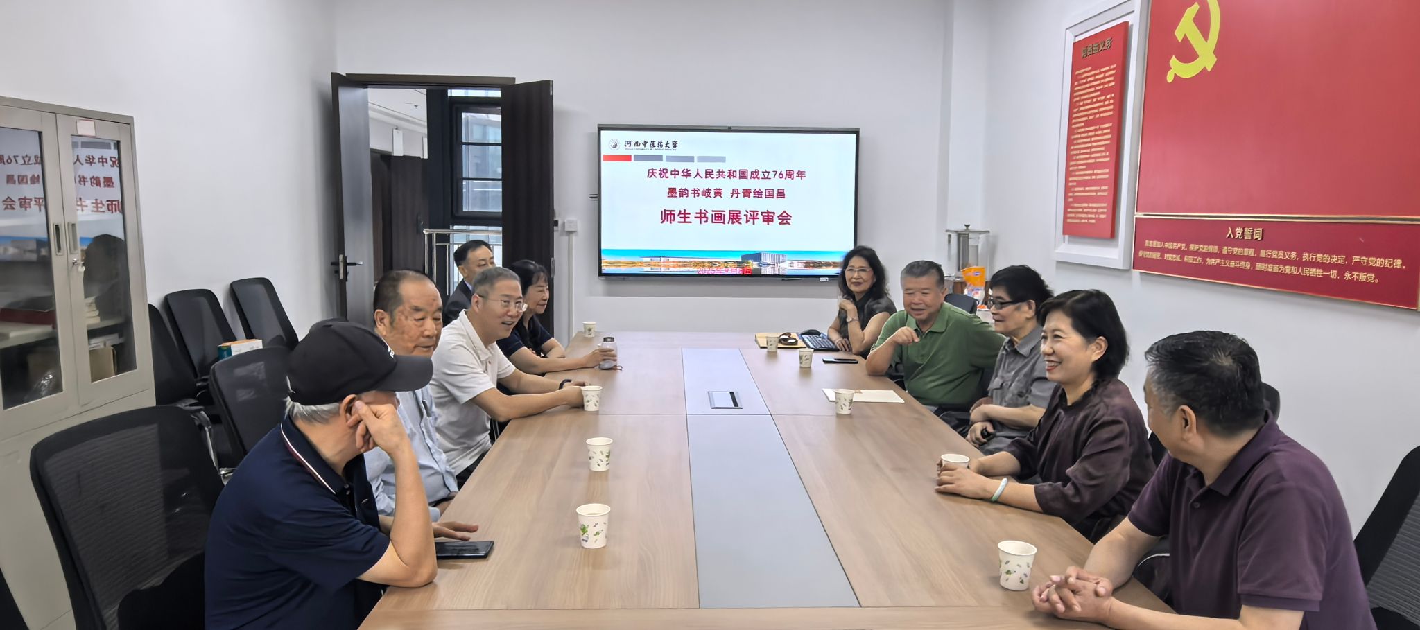 本网讯(文/图 张峥丽 张卫兵)为落实学校第二次党代会精神,传承中华优秀中医药文化,礼赞祖国76载辉煌历程,2025年9月8日,leyu·乐鱼(中国)体育官方网站书画院“墨韵书岐黄,丹青绘国昌”师生书画展评审活动在离退休职工工作处举行。活动特邀中国书法家协会第七届理事、河南省文联名誉主席、河南省书法家协会名誉主席杨杰,河南省书画院美术创研部主任、国家一级美术师焦保峰,学校书画院名誉院长朱忠宝、院长孙建中、副院长张峥丽、王安邦等组成评审小组,对师生书画作品进行评审,旨在以笔墨丹青为载体,彰显中医药文化魅力与师生的家国情怀。
