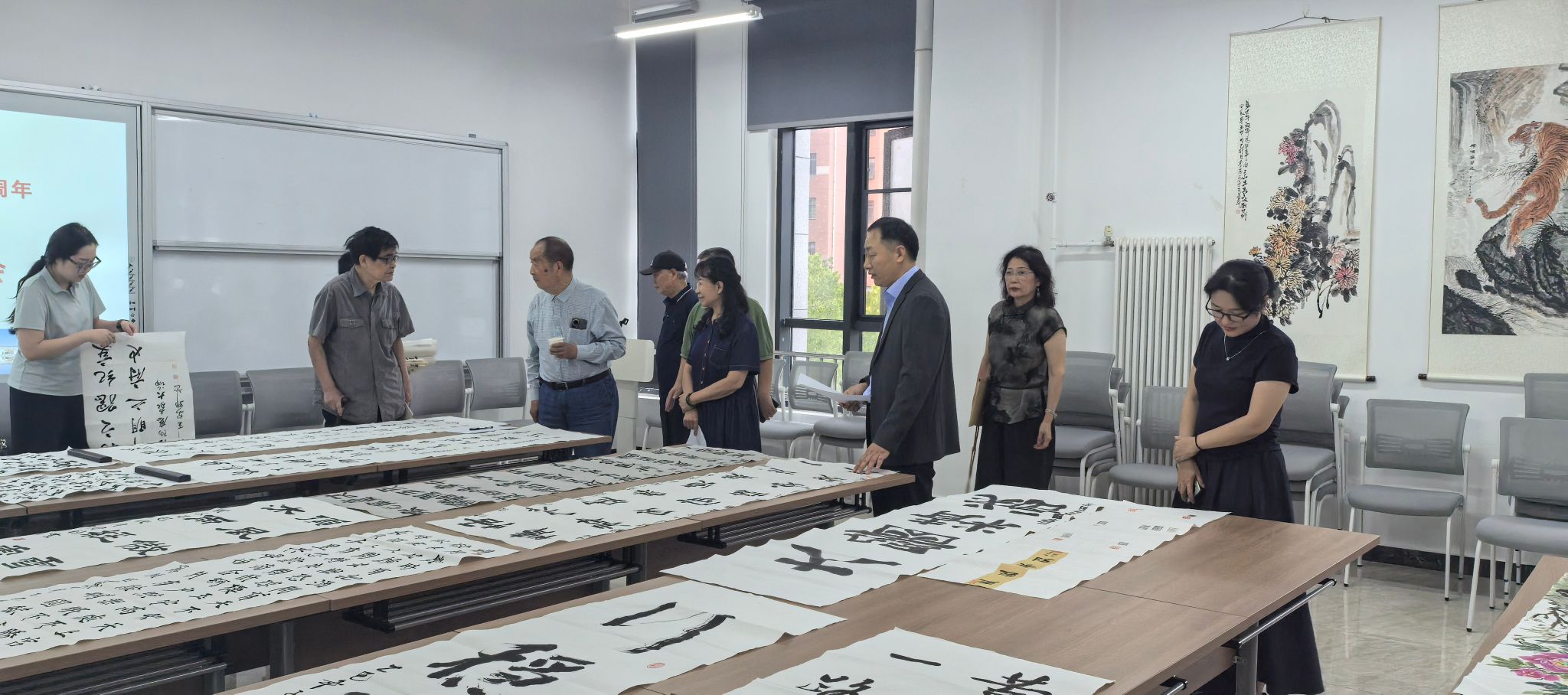 评审工作开始前评审小组召开会议,孙建中对此次评审工作提出了明确要求,并对评审规则、办法以及评审纪律进行安排。全体评委本着公平、公正的原则,围绕“让作品说话”的标准,认真评审每一幅书画、篆刻作品,兼顾书体、取法和创作水平。评审小组最终评选出书法、绘画、篆刻一等奖4名、二等奖6名、三等奖8名及优秀奖若干。获奖和入选作品将于国庆期间在学校展出,让全校师生感受到中医药文化与书画艺术交织的独特魅力。