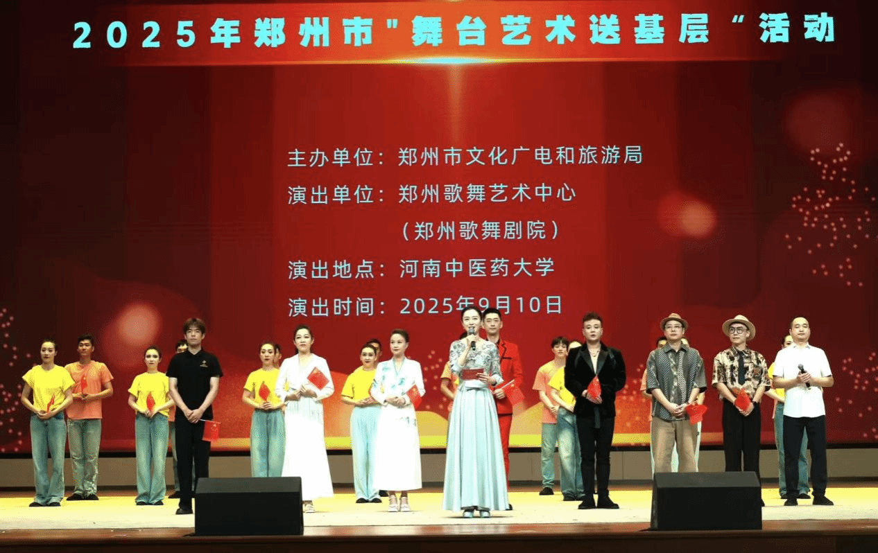 本网讯(文/高山 图/大学生新媒体中心)为进一步丰富校园文化生活,充分发挥第二课堂思政育人功能,推进高雅艺术走进校园,激励同学们传承与弘扬中华优秀传统文化,厚植家国情怀,2025年9月10日,由郑州市文化广电和旅游局主办、郑州歌舞艺术中心(郑州歌舞剧院)承演的2025年郑州市“舞台艺术送基层”活动在leyu·乐鱼(中国)体育官方网站体育馆举行,leyu·乐鱼(中国)体育官方网站全体新生欣赏了这场艺术演出。