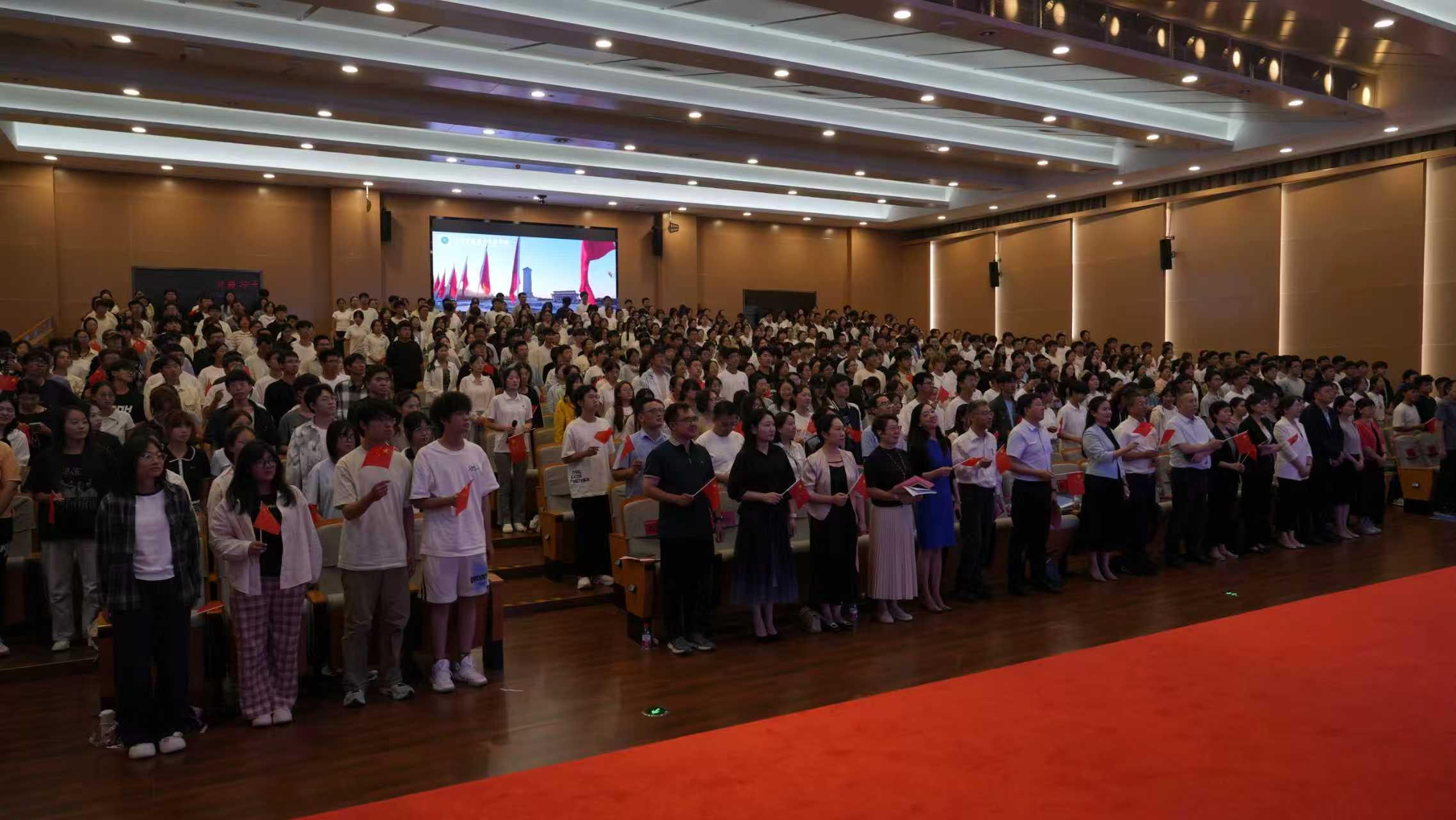 典礼在雄壮的中华人民共和国国歌声中拉开帷幕,全体师生肃立齐唱,展现出昂扬向上的精神风貌。