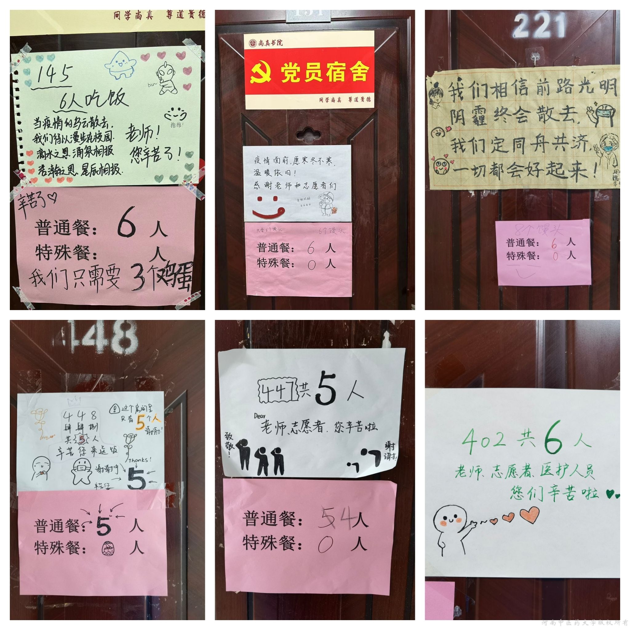 越是困难时刻,越能见证守望相助的真情;越是紧要关头,越要凝聚同舟共济的力量。在学校的封闭管理之下,莘莘学子响应号召,或迎难而上彰显担当,或加强自我防护坚守校园阵地,或严格自律上好每一节网课,将封校生活过得有声有色,以实际行动展现了“有理想、有担当、有本领、有情怀”的新时代大学生风采。“大学几年一直有疫情,虽然很遗憾,但封校期间也增加了跟舍友们的交流机会,体验到大家在一起的欢乐时光。”“感谢老师们一直与我们在一起,在他们丰满的羽翼下我们很安心,很暖心。”“相信书院,相信学校,我们一定一定要服从安排,共克时艰、共担风雨,河中医加油!”对待疫情,同学们都表现出难得的乐观和坦然。在这场无硝烟战争中,大家紧密团结、心手相连,每位师生皆是参与者,都在为打赢这场疫情防控的阻击战而默默奉献,展示着疫情防控“青春有我”的热情。