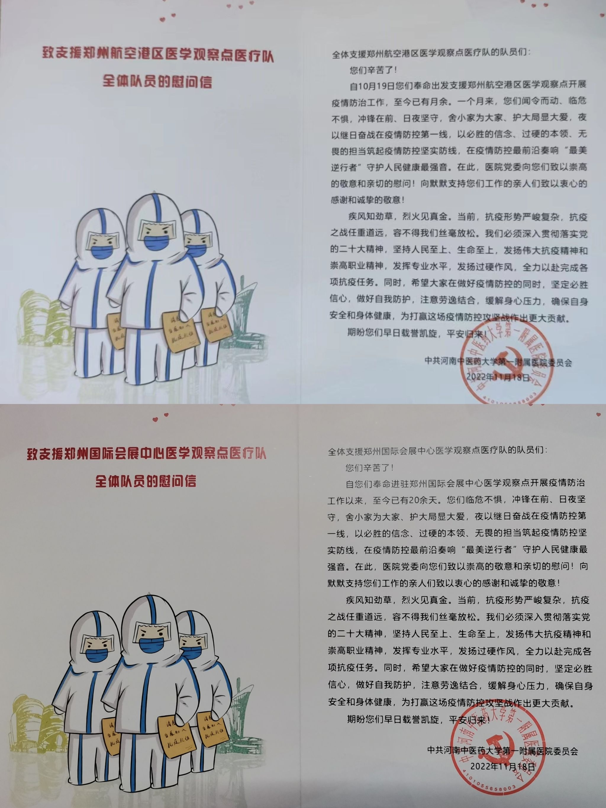 据悉,奔赴抗疫一线以后,两支医疗队都成立了临时党总支、党支部,在疫情防控中充分发挥了基层党组织的战斗堡垒作用和党员先锋模范作用。本次为队员们送去了党的二十大报告读本和医院党委的慰问信,激励着队员们坚定必胜信心,主动担当作为,奋力夺取疫情防控的又一次胜利。