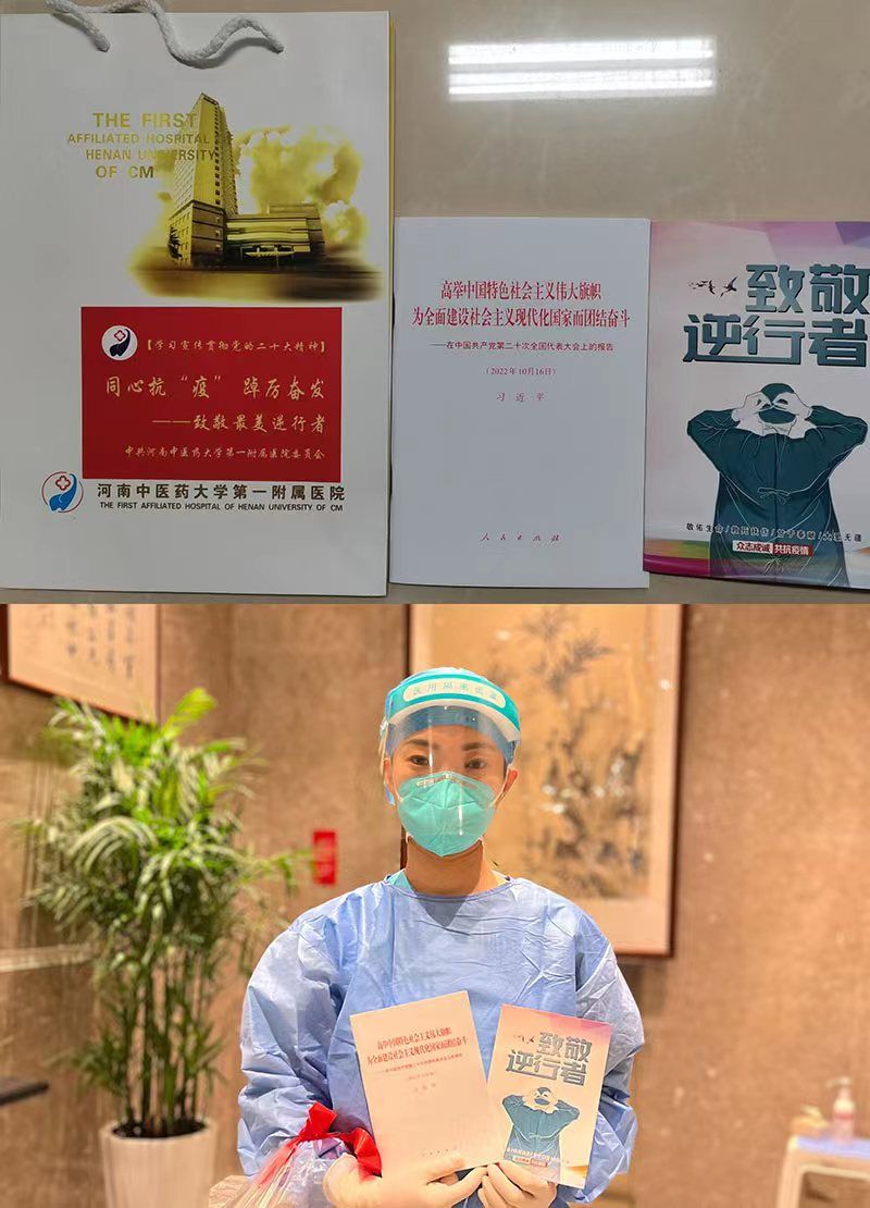 大家收到“大礼包”后,纷纷表示感受到了组织的温暖和有力的鼓舞,感谢医院党委的关心关爱。大家将会深入学习宣传贯彻党的二十大精神,坚持“人民至上、生命至上”,发扬伟大抗疫精神和崇高职业精神,发挥专业水平,发扬过硬作风,全力以赴完成各项抗疫任务。