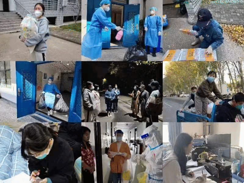 10月13日以来,医学院学工队伍6位辅导员一直坚守在校园中。11月11日,在疫情吃紧的重要关头,又有3位辅导员克服家庭实际困难,来到学校加入了一线的抗疫队伍。在学院党委的坚强领导下,辅导员老师们身兼数职,化身协助医护人员的“核酸检测大白”;给学生运送书籍和必需药品的“快递员”;挨门挨户配送一日三餐的“外卖员”;有的老师利用中医专业优势,化身“学工办常驻大夫”,用自己的行动为校园疫情防控贡献微薄力量;有的老师贴心地自费为学生购买香菇酱和副食,让学生感受到了学院的细心关爱。这支由9名女老师组成的学工娘子军始终坚守在校园疫情防控斗争的最前沿,即使双手布满勒痕和伤疤,依旧咬牙坚持;即使满身疲惫,依然用心呵护学生安危,他们摒弃骄娇二气,用日夜坚守诠释爱生如子,用陪伴守护彰显师者仁心,彰显了辅导员老师们的职责操守。