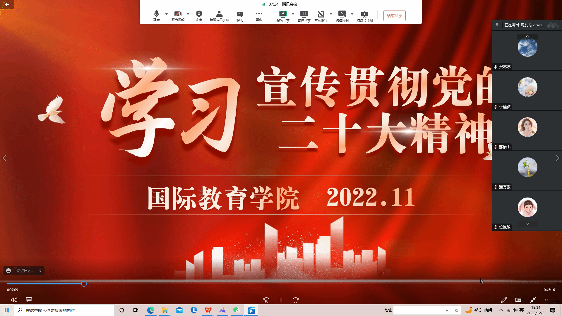本网讯(文图/王献竹)党的二十大是一次高举旗帜、凝聚力量、团结奋进的大会,在党和国家发展进程中具有重大里程碑意义。党的二十大召开以来,国际教育学院党总支高度重视、迅速行动,按照校党委的统一部署,在全院掀起多形式、分层次、全方位深入学习宣传贯彻党的二十大精神的热潮。