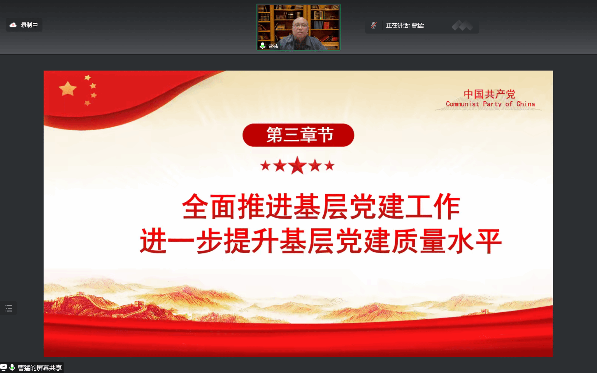 本网讯(文/图 姚明超 雷亚星)为进一步深入学习贯彻落实党的二十大精神,用党的二十大精神全面指导学院党建工作,加强学院基层党组织建设,提高基层党组织的党建能力和水平,2023年1月5日,儿科医学院邀请学校党委组织部部长曹猛,通过腾讯会议线上召开“学习贯彻党的二十大精神,扎实做好基层党建工作”专题学习培训。会议由儿科医学院党委书记任献青主持,儿科医学院党政领导班子、基层党组织书记及委员、科级干部、学生干部党员参会学习。