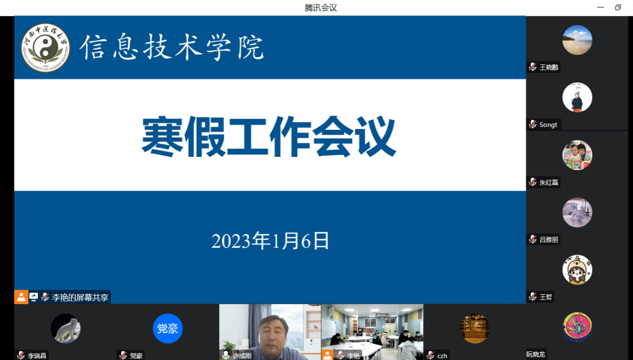 本网讯(文/李艳 图/李瑞昌)为切实做好学院寒假期间的工作,确保各项工作平稳、有序、安全运行。2023年1月6日下午,信息技术学院通过线上线下相结合的方式召开寒假工作会议。学院领导班子及全体教职工参加会议。会议由学院党委书记马赟主持。