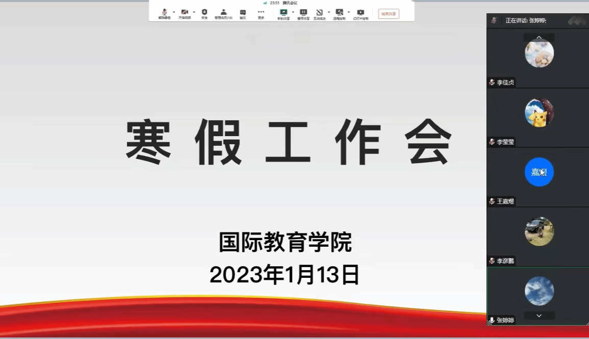 本网讯(文图/王嘉昱)2023年1月13日下午,国际教育学院召开寒假工作会议,传达学校会议精神,安排部署2023年寒假期间工作。学院领导班子及全体教职工参加会议。会议由院长周友龙主持。