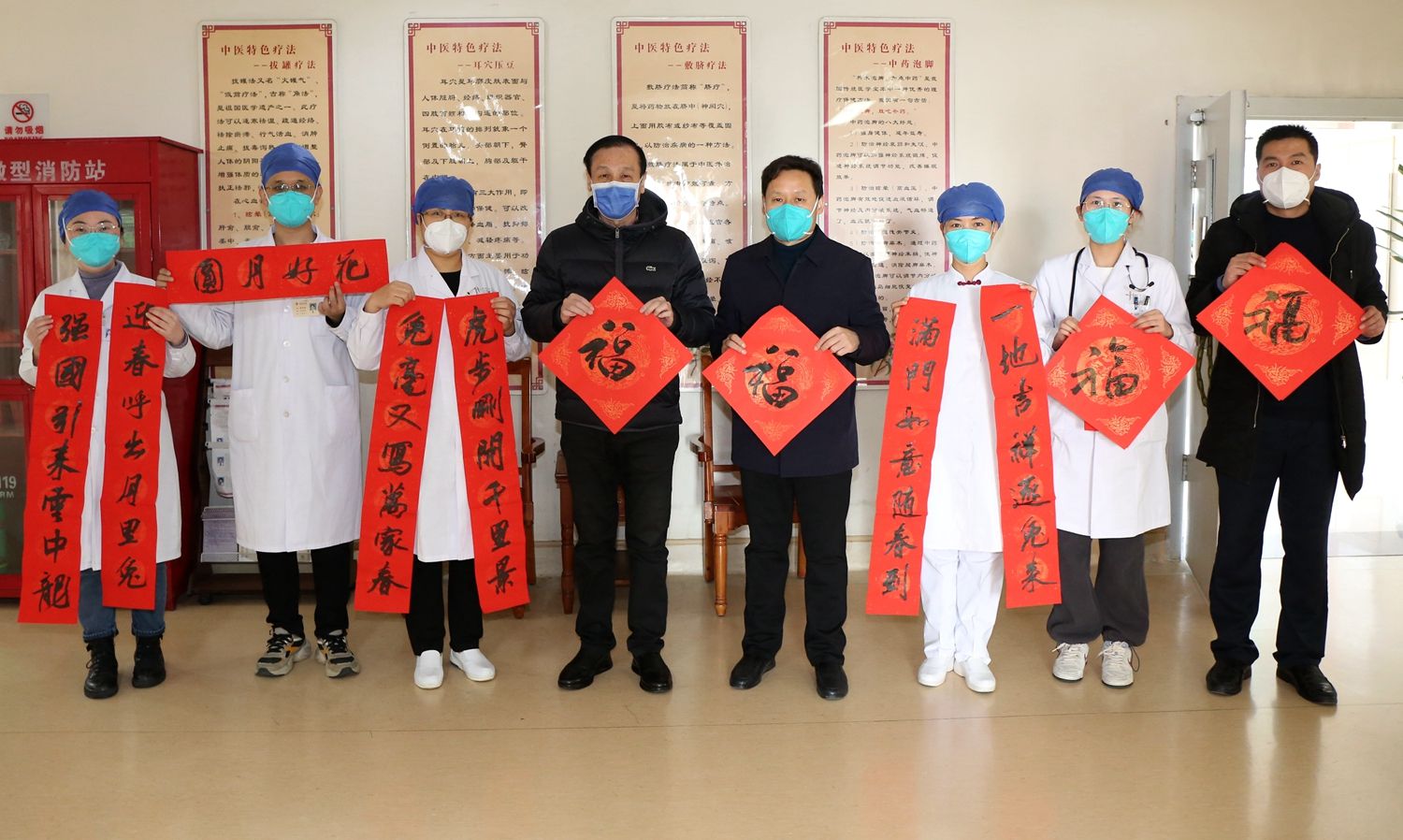 二附院院长崔应麟、工会主席李希民等来到临床一线为大家送春联