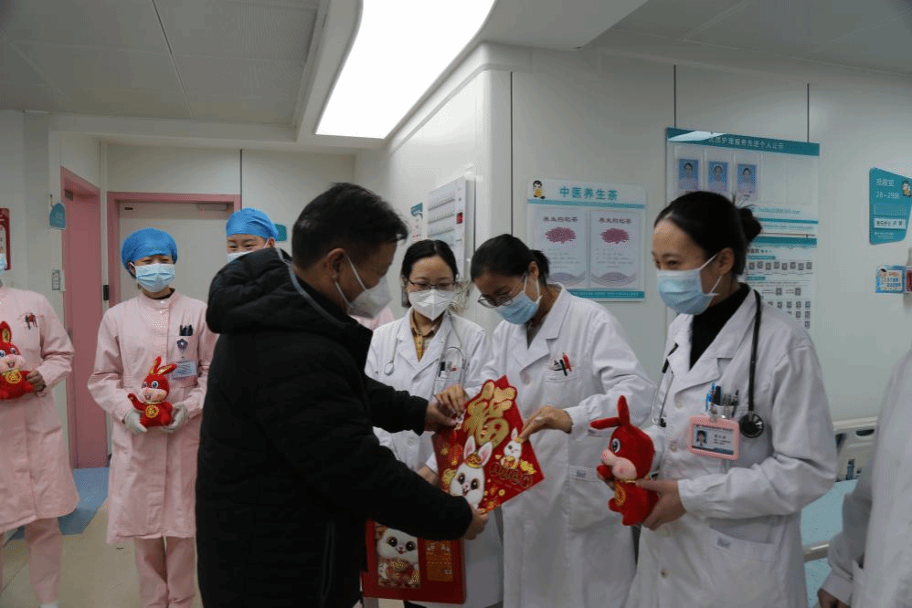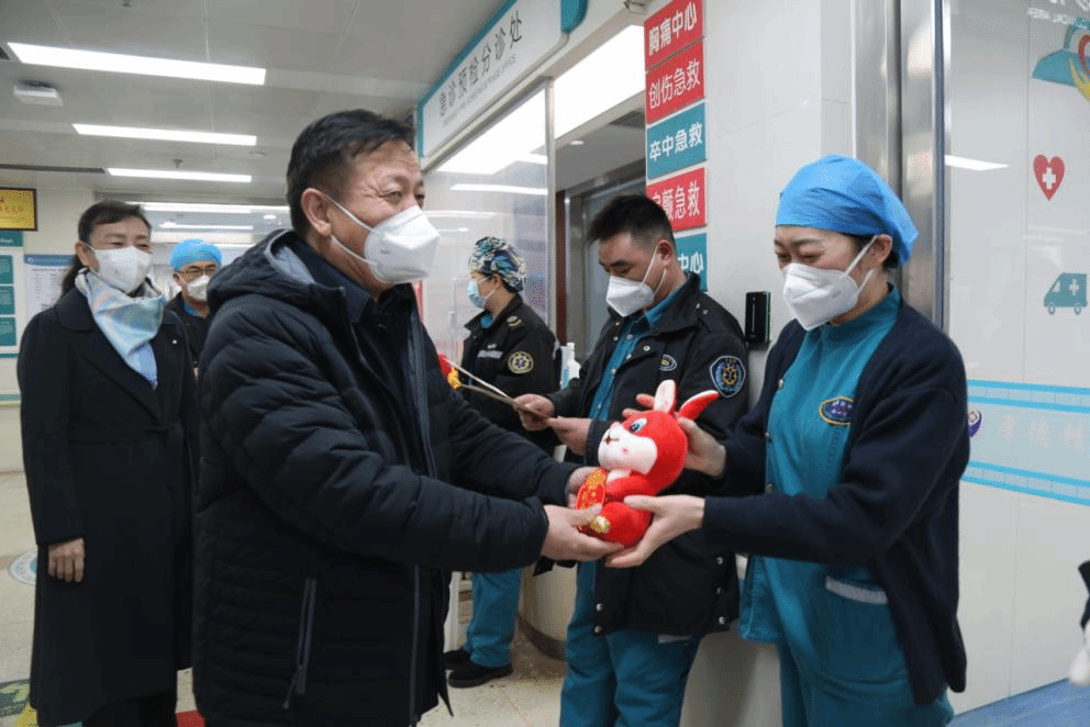 本网讯(文/毋杨 图/平康瑄 一附院各集体)律转鸿钧佳气同,肩摩毂击乐融融。癸卯兔年来临之际,一附院党委书记翟剑波、副书记张婉红及团委全体人员一同走进“河南省五四青年奖章”集体、“青年文明号”集体及“延泰先锋”志愿服务队,送去吉祥兔与新春礼包,看望一线医护人员,与青年们共享新春喜乐。