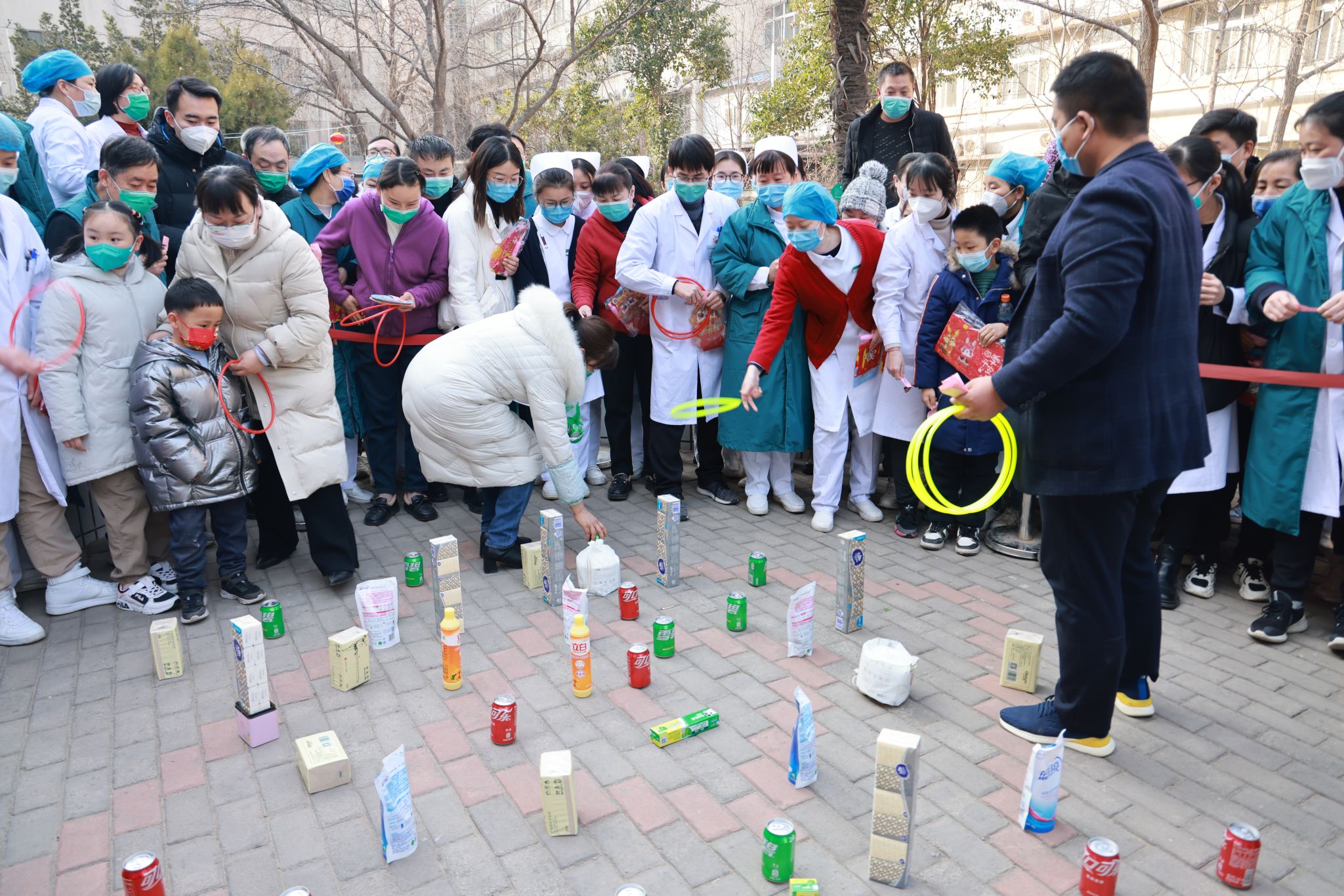 活动现场,人头攒动,很是热闹,大家三三两两聚在一起,互相讨论、思索着谜底。火爆的场面还吸引了不少病人及家属参与其中,人群中不时传出一阵阵开心的笑声。按照活动规则,参与者猜中后可以现场获得一份精美小奖品,不到一个小时,二百条灯谜便被大家一一猜中。除了猜灯谜,院工会还设置了趣味“套圈”活动,使大家在繁忙的工作之余放松心情,感受活动带来的健康和快乐。