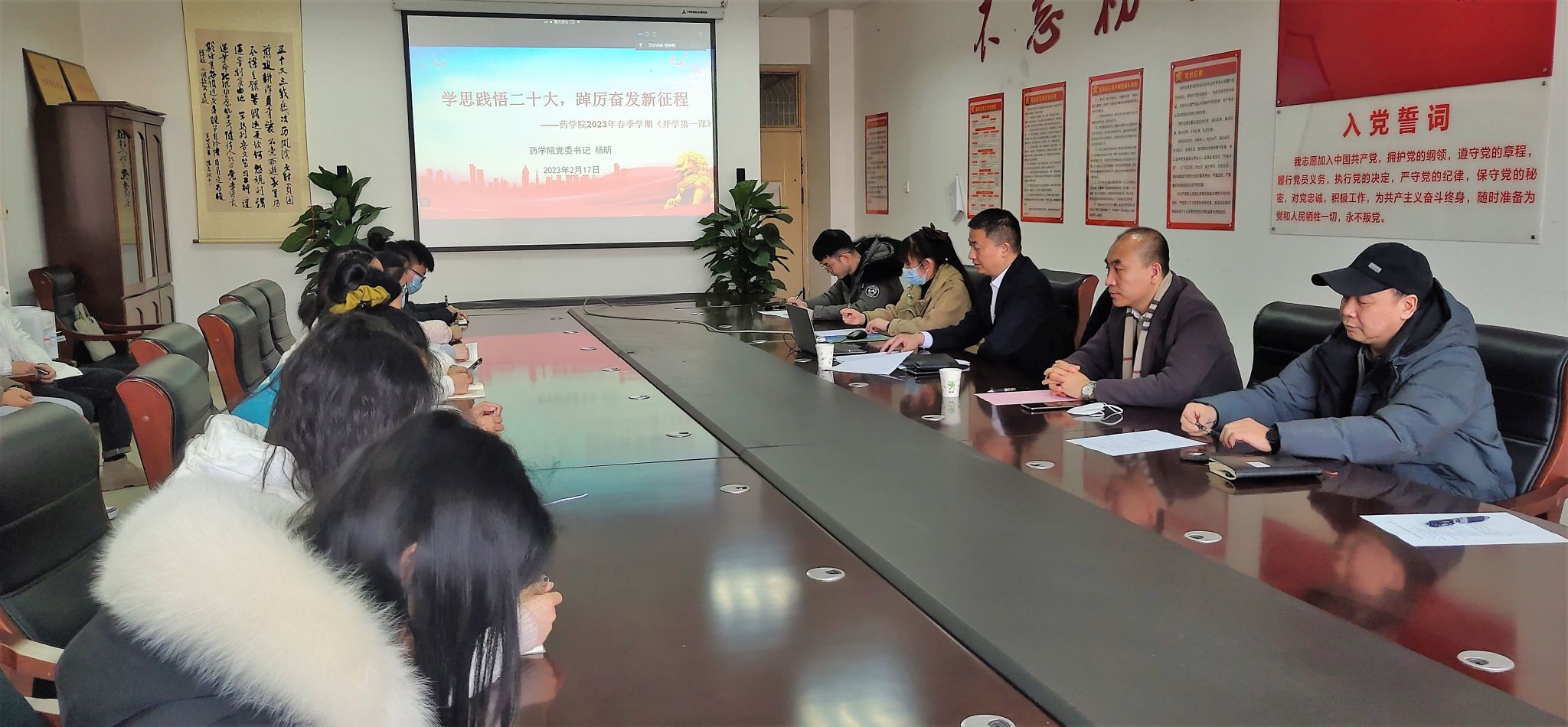 本网讯(文/秦中朋 图/王胜超)春回大地,万物生发。为深入学习宣传贯彻党的二十大精神,认真落实习近平总书记关于“大思政课”建设的重要指示精神,根据省委教育工委、省教育厅和学校《关于上好2023年春季开学第一课的通知》要求,2023年2月17日上午,药学院以线上和线下相结合的方式开展2023年春季学期研究生开学第一课。学院党委书记杨昕,副院长纪宝玉,研究生办全体成员和各年级班委、研究生会成员于A236会议室参加现场会议,其余500余名研究生以线上形式参加会议,纪宝玉主持会议。