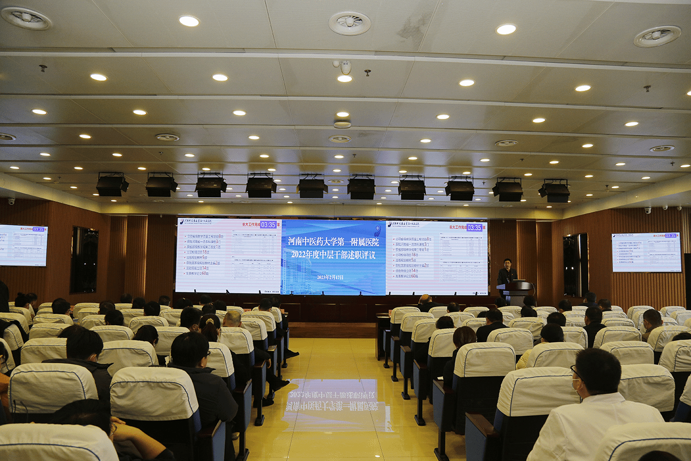本网讯(文/陈锦涛 图/冯超 赵庆庆)为适应医院发展要求,激励干部担当作为,锻造德才兼备的高素质干部队伍,按照一附院党委工作部署,2023年2月17日-18日,一附院开展2022年度中层干部述职评议大会。医院党委书记翟剑波,党委副书记、院长朱明军及其他在郑领导班子成员,各党总支书记、各科室主任、正科级和主持工作的中层干部参加会议。会议由医院党委副书记孟林主持。