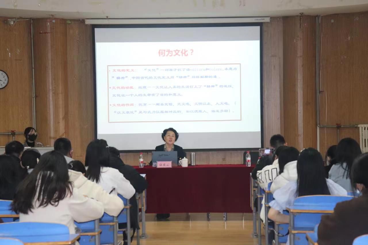 康来云教授以《推进文化自信自强 铸就社会主义文化新辉煌》为题,围绕推进文化自信自强的重要意义、何为文化、为什么要推进文化自信自强、夯实文化自信自强的历史文化根基、在文化与历史自信中讲好中医故事等方面带领大家学习党的二十大报告。她讲到,党的二十大报告是推动中国特色社会主义不断前进的政治宣言、理论纲领和行动指南。她勉励全体学生要认真学习好、领悟好、把握好党的二十大报告中关于文化自信自强的重要论述,不断增强勤奋学习和努力奋斗的志气和勇气。