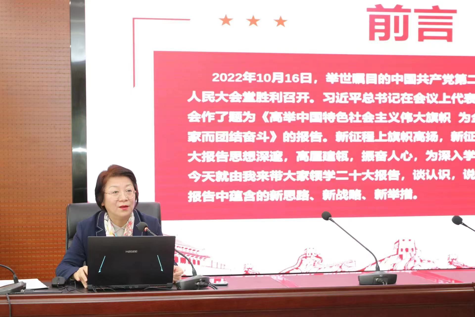 周萍以《奋进新征程 开拓新时代》为题,围绕“党的二十大的历史地位和重要意义、思想引领和开辟马克思主义中国化时代化新境界、将党的二十大精神融入中医药传统文化中、习近平总书记对青年的寄语与希望”等四个方面带领大家学习党的二十大报告。她讲到作为新时代的中国青年,要将“以志为先,以新为径,以苦为食”,以青春之名在新时代不懈奋斗。她给同学们提了四点希望:第一,要坚定理想信念,做新时代有理想的好青年;第二,要勇于担当尽责,做新时代敢担当的好青年;第三,要扎实埋头苦干,做新时代能吃苦的好青年;第四,要矢志艰苦奋斗,做新时代肯奋斗的好青年。