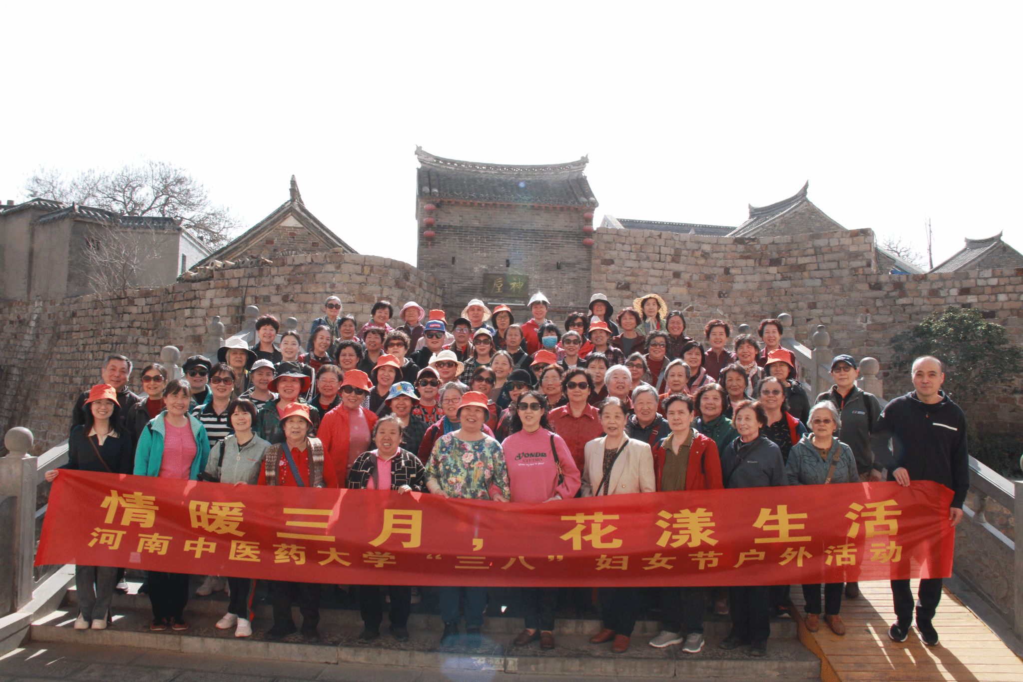 本网讯(文/程丽娟 图/苗雨)3月8日,离退处在神垕古镇举办“情暖三月,花漾生活”踏春活动。共有76名离退休女教职工参与活动、畅游古镇。离退处处长唐陆、副处长张卫兵及离退处全体工作人员参与活动。