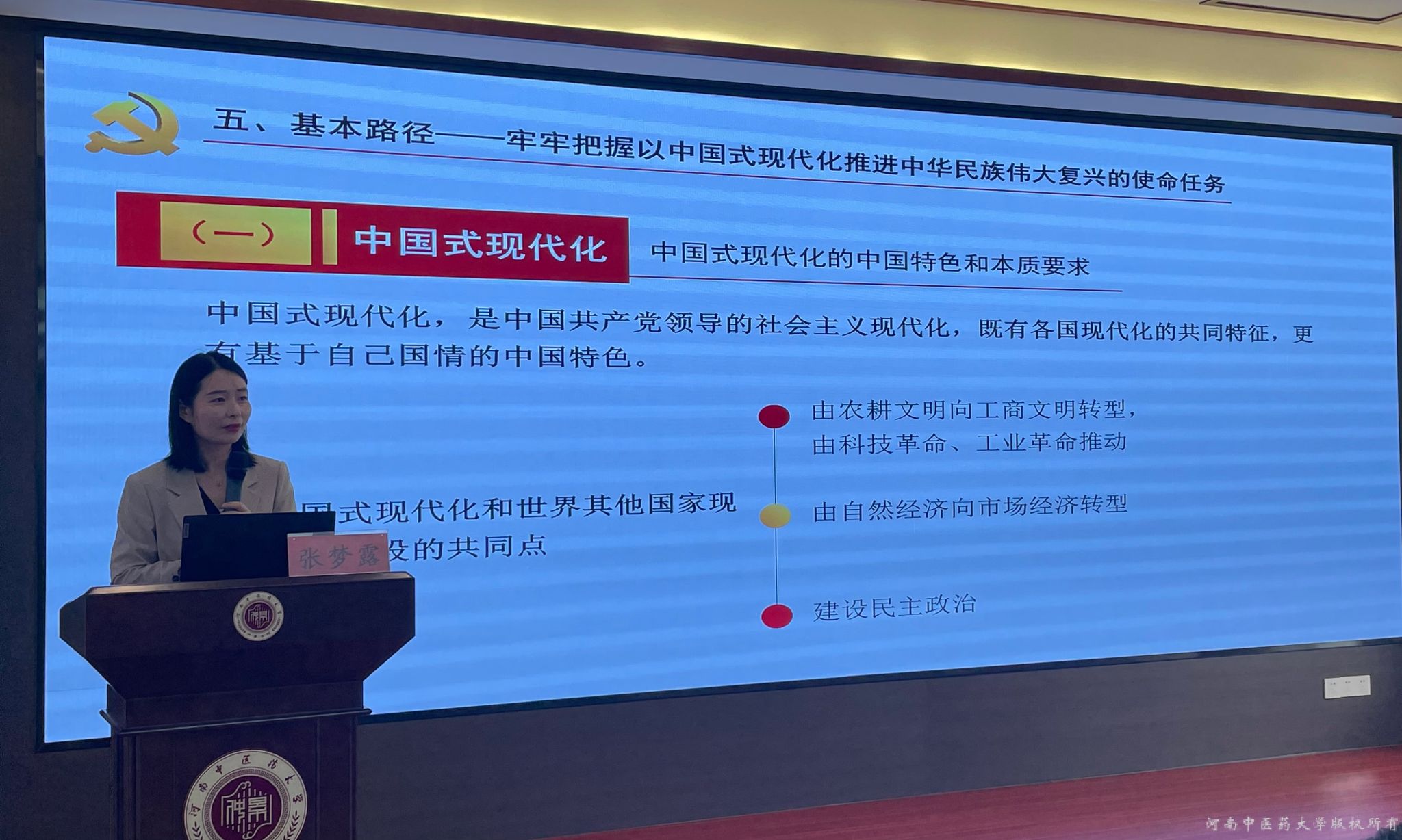 本网讯(文图/张蓝熙)为深入学习宣传贯彻党的二十大精神,统一学院师生思想,推动学院的高质量发展,2023年3月7日,中医学院(仲景学院)举办“学报告 强引领”专题活动,邀请leyu·乐鱼(中国)体育官方网站马克思主义学院张梦露博士以《奋进新征程 建功新时代——认真学习领会党的二十大精神》为题做专题宣讲。活动由学院分团委书记王超主持,学院党员师生代表参与。
