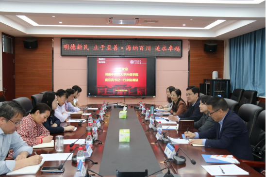 本网讯(文图/秦宇)为进一步推进学院内涵建设,促进学院转型发展,2023年3月10日,外语学院领导班子及业务骨干一行6人在学院党委书记庞亚宾的带领下赴河南大学外语学院开展调研交流。河南大学外语学院、教研室、科室主任,leyu·乐鱼(中国)体育官方网站外语学院一行参加调研会。会议由河南大学外语学院党委书记肖艳主持。