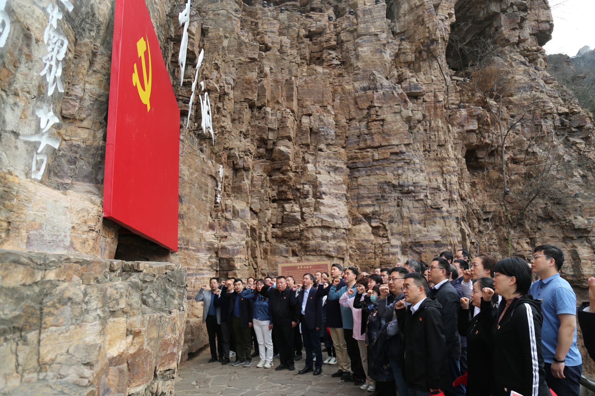 习近平总书记视察安阳时强调:“红旗渠精神同延安精神是一脉相承的,是中华民族不可磨灭的历史记忆,是中国共产党人精神谱系的重要组成部分”。在红旗渠纪念馆,大家通过参观千年旱魔、红旗引领、太行丰碑、山河巨变、精神永恒五个展厅,共同回顾了当年的修渠历程。一幅幅珍贵的历史照片和一个个实景模型,生动再现了当年引漳入河、人定胜天的壮丽画卷。在红旗渠咽喉工程——青年洞,党员同志们通过开展重温入党誓词活动,实地感受了“自力更生、艰苦创业、团结协作、无私奉献”的红旗渠精神。