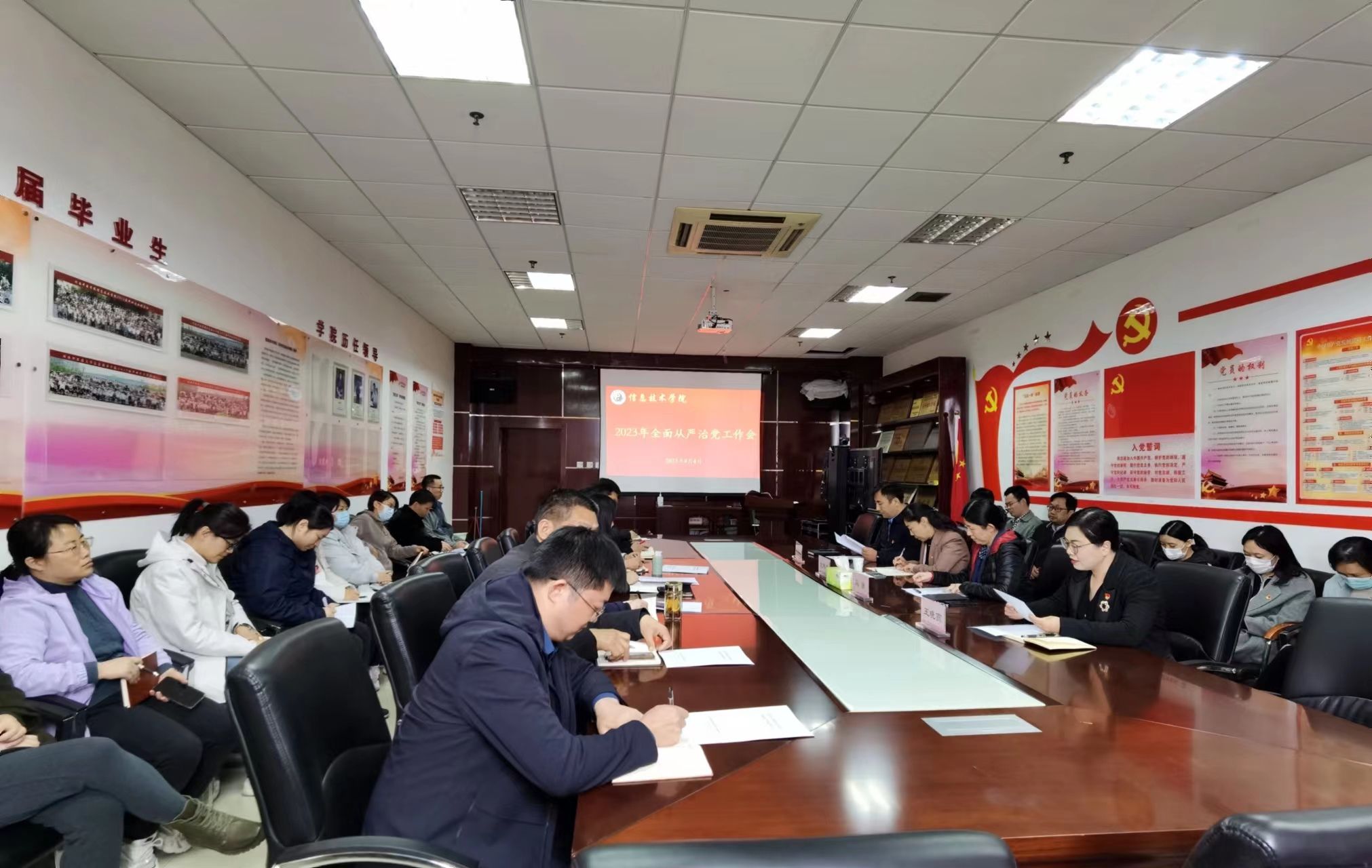 院党委书记尹丽对学院2022年全面从严治党工作进行了总结回顾,安排部署了新一年学院全面从严治党工作任务,并提了三点要求:一要坚持以思想建党淬炼自我革命的锐利武器。学院自成立以来,高度重视思想建党、理论强国,积极用党的创新理论武装头脑。下一步要结合学习贯彻习近平新时代中国特色社会主义思想主题教育,自觉用党的创新理论滋养初心、引领使命,增强为党分忧、为国奉献、为民造福的政治担当,锤炼共产党人的钢筋铁骨;二要坚持发扬钉钉子的精神,坚决落实中央八项规定。要持续弘扬谦虚谨慎、艰苦奋斗的光荣传统和优良作风,在常和长、严和实、深和细上下工夫,涵养求真务实、清正廉洁的新风正气,以好作风好形象保障党的二十大决策部署落实见效;三要坚持以上率下,压紧压实全面从严治党政治责任。从院领导做起,推动主体责任和监督责任一贯到底。加强支部书记、科室负责人和业务岗负责人的培训,提高政治站位,增强责任意识,把思想和行动统一到学校的各项工作安排上来,为加快学校转型发展和学院高质量发展提供坚强保障。