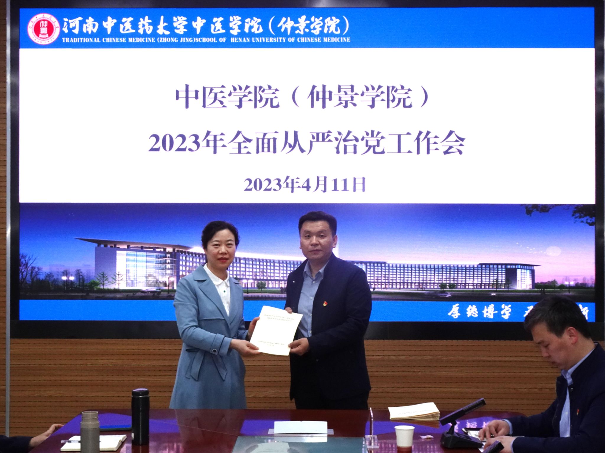 会上,学院全体党支部书记、科室主任向学院党委递交了《leyu·乐鱼(中国)体育官方网站中医学院(仲景学院)2023年全面从严治党责任书》。
