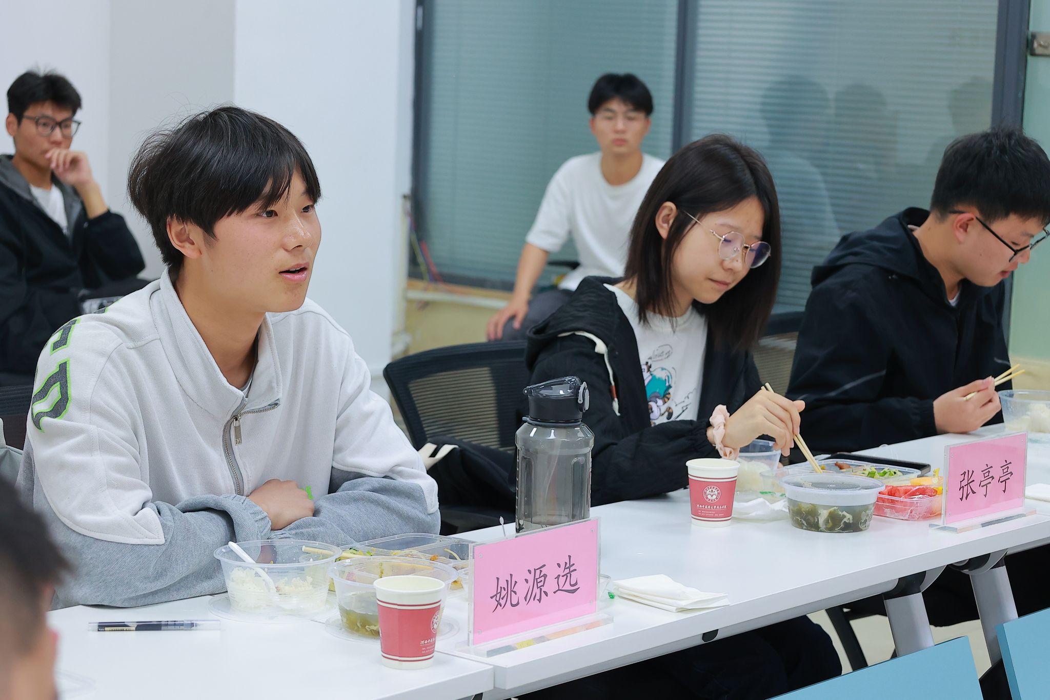 正午桌前人围坐,师生共话书院情。餐桌就像是一条无形的纽带,连接着师生之间的情感。在温馨轻松的就餐过程中,同学们分享了在尚真书院学习生活的感受,并围绕课程学习、日常生活、人才培养、职业生涯规划、书院基础设施建设、社团建设、文化建设等内容开展交流,积极为书院发展建言献策。各位领导老师认真听取、逐一回应、并逐个记录了相关问题或建议。笑意融融、畅所欲言的氛围,让学生不仅与书院老师、领导们拉近了距离,也在感受温暖的关怀中畅通了表达诉求的渠道。