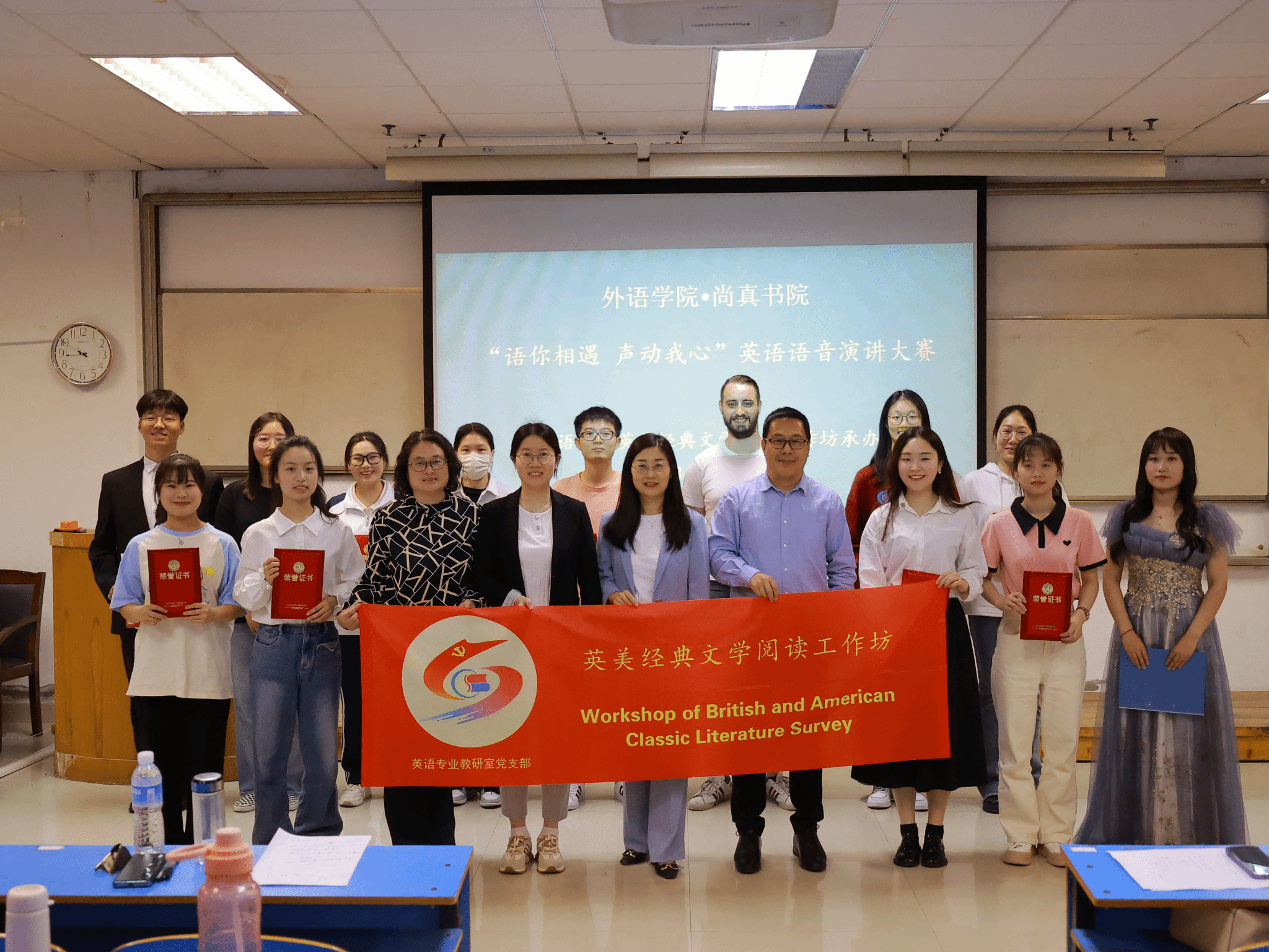 本网讯(文/耿文斐 图/韩璐杰)为进一步激发学生学习英语的热情,提高专业学生的英语语音、听力以及口语等基本专业素养,2023年5月22日,外语学院在教学实验大楼四楼阶梯教室成功举办了“语你相遇,声动我心”英语语音演讲大赛。外语学院副院长张冰、外籍专家Tom 、英语教研室主任王玖炜和英语专业教研室骨干教师担任了本次大赛的评委。