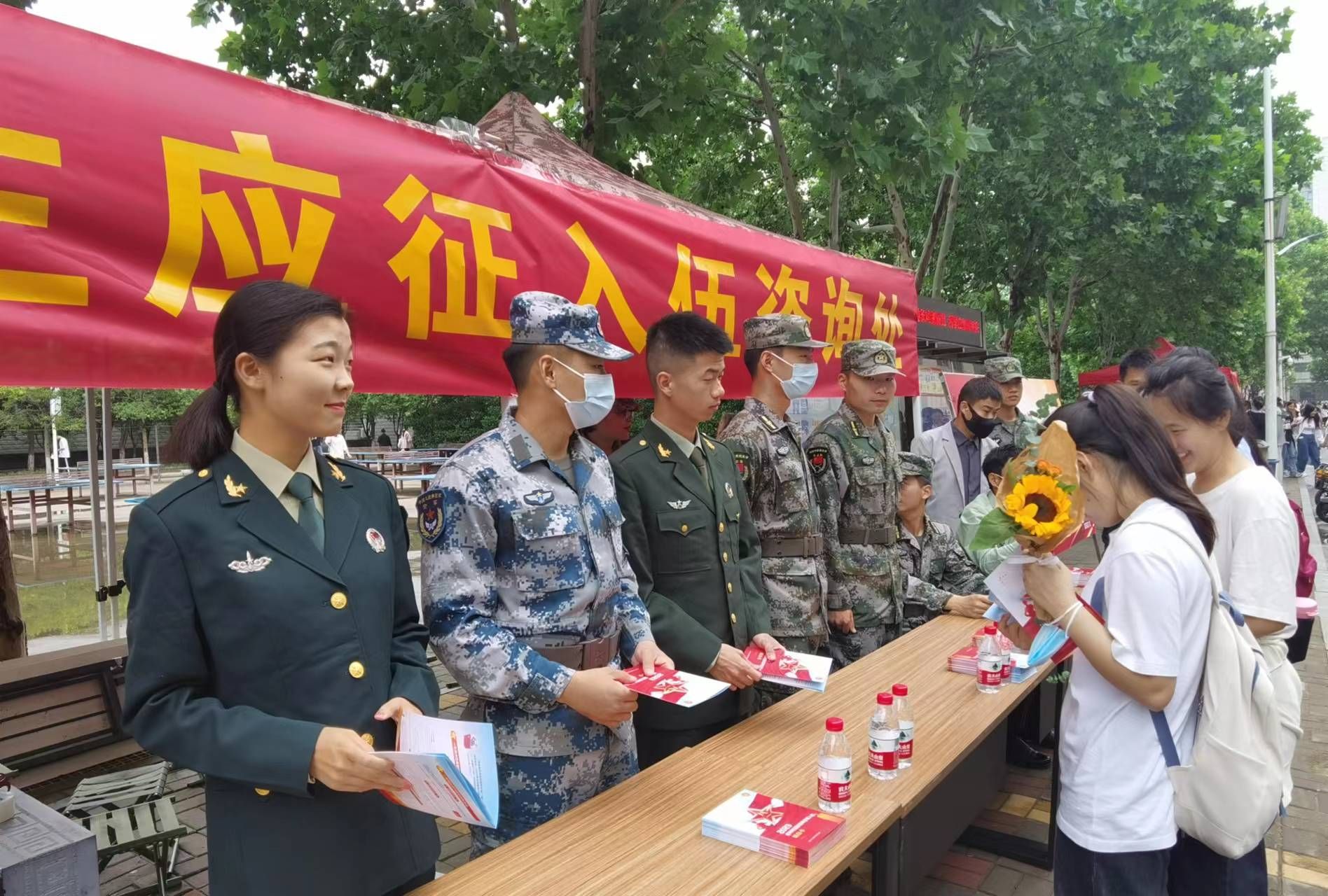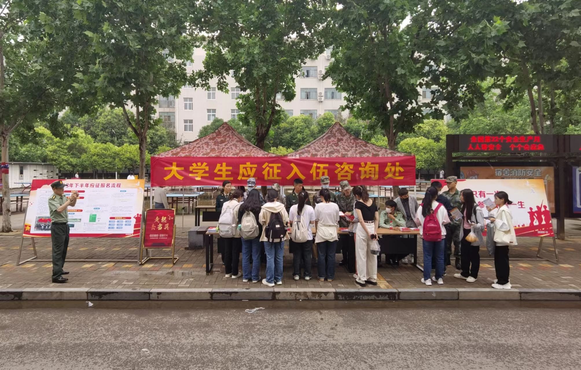 本网讯(文/王百清 图/吉光耀)为落实leyu·乐鱼(中国)体育官方网站2023年度征兵工作任务,扎实开展“征兵宣传月”活动,进一步提高leyu·乐鱼(中国)体育官方网站征兵宣传的精准度和渗透力,引导和鼓励2023年应届毕业生响应国家号召,投身建功军营,2023年5月30日,学校武装部在杏林餐厅南门广场举办了征兵现场宣传咨询活动。