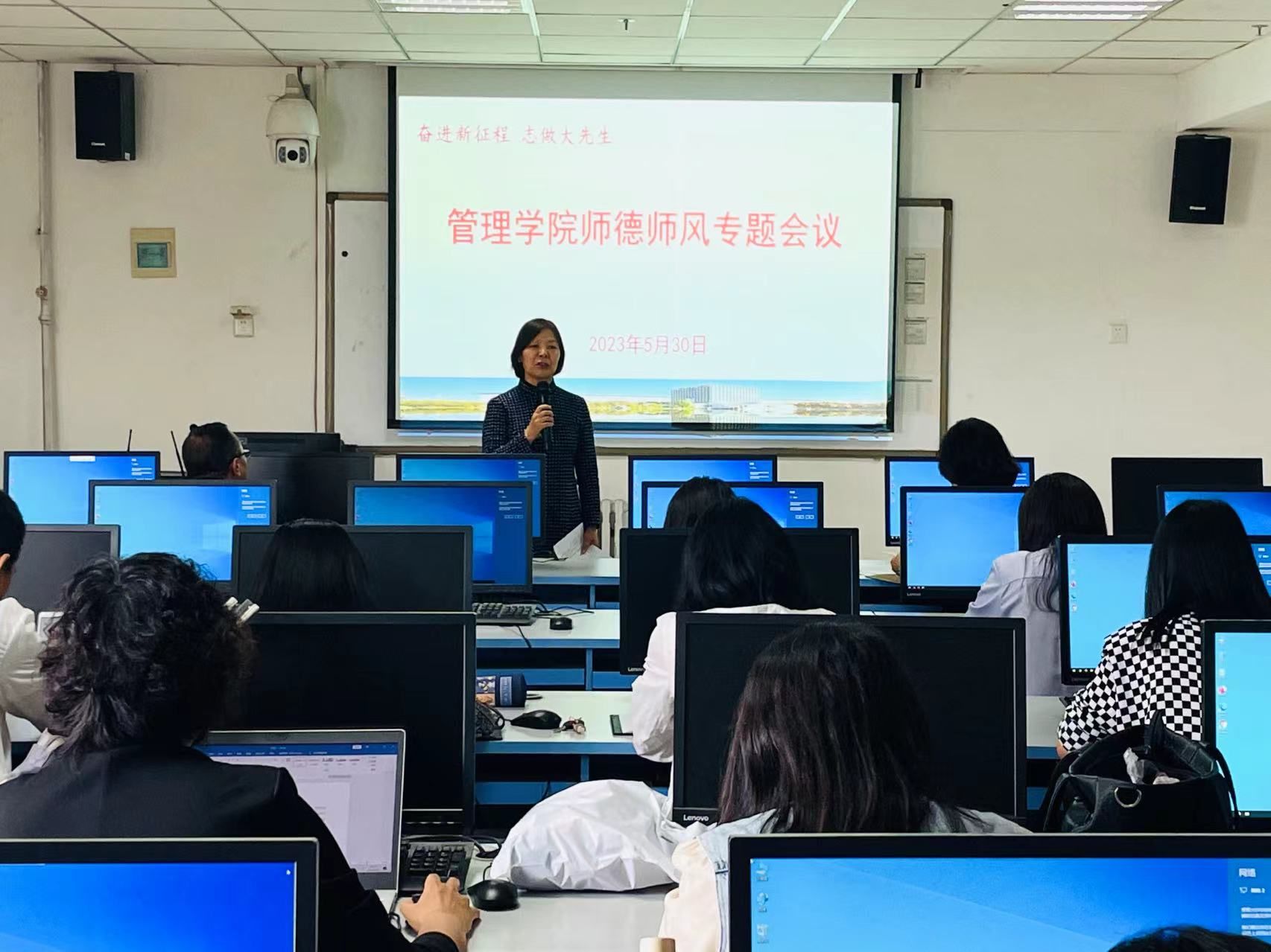 本网讯(文/黄璐 图/杨静静)5月30日,管理学院师德师风专题会在教学实验大楼BS502教室召开。学院领导班子成员和全体教职工参加会议。会议由院长张丽青主持。