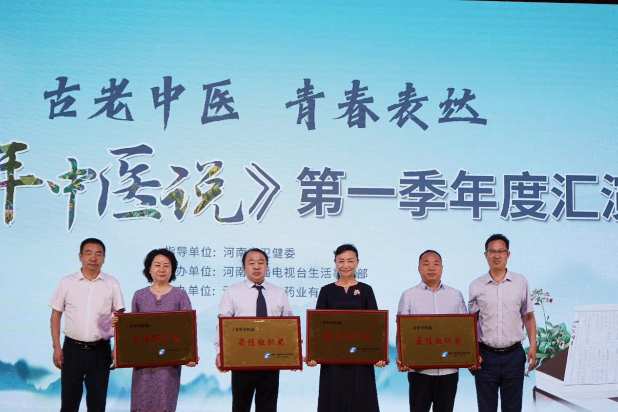 栏目推出以来,全网累计点击量破亿,一附院参与活动的青年中医师也因《青年中医说》而被大众熟知和喜爱。2023年6月16日下午,河南广播电视台举办《青年中医说》第一季年度汇演,并现场对参与的集体和个人进行表彰,一附院荣获“最佳组织奖”,一附院青年医师李付根、佘悦、艾莘、魏伟峰荣获“网络人气奖”。