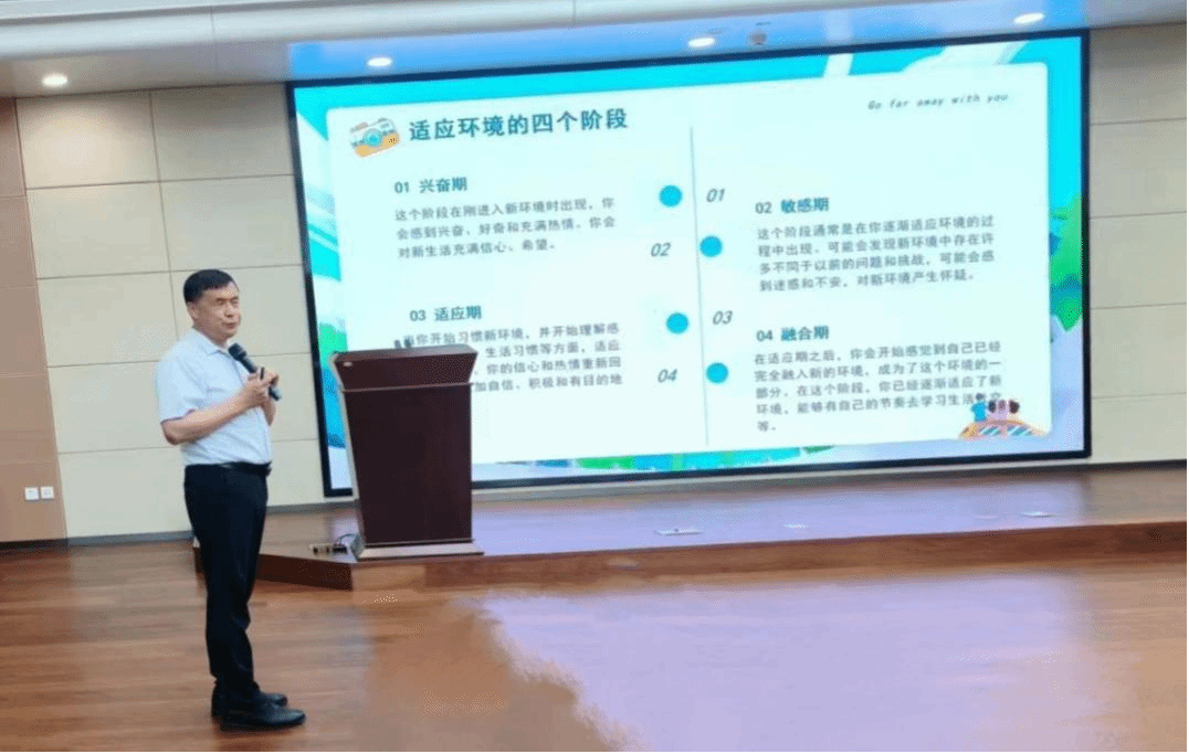 学校党委宣传部部长刘金厂以《从党的二十大精神中汲取奋进的力量》为题作讲座,他结合自身国外学习、工作经历从“学精神、强信心、有作为”三个方面引导学生筑牢“国家安全观”思想防火墙,树立正确的世界观和价值观,自觉维护国家和民族利益,传承和弘扬留学报国光荣传统。讲座生动、全面地使学生们对国际形势有了新的认知,引导同学们对将来在国外学业、生活、安全及未来发展进行新的深层次的思考。