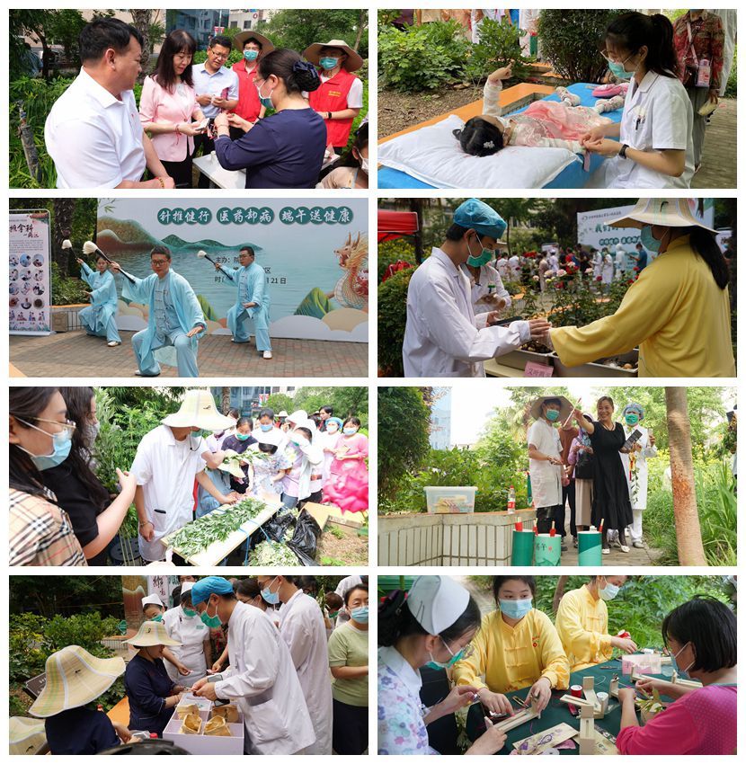 活动现场,由社区朋友和医院职工参编展演的民族舞蹈、养生功法和包粽子、赠香囊、送艾草等活动让大家切身感受到传统文化和中医药文化的特色和魅力,让中医药文化内涵植根于社区群众心中。普罗旺世社区艺术团带来的《自由舞》和《团扇旗袍秀》,不仅展示了女性的传统服装、又展示了舞蹈节奏的韵味,亦舞亦运动;太极乐天天乐社团带来的养生功法《三十二式太极剑》,灵活多变、刚柔相济、造型优美、似操如舞。包粽子比赛更是将活动推向高潮。