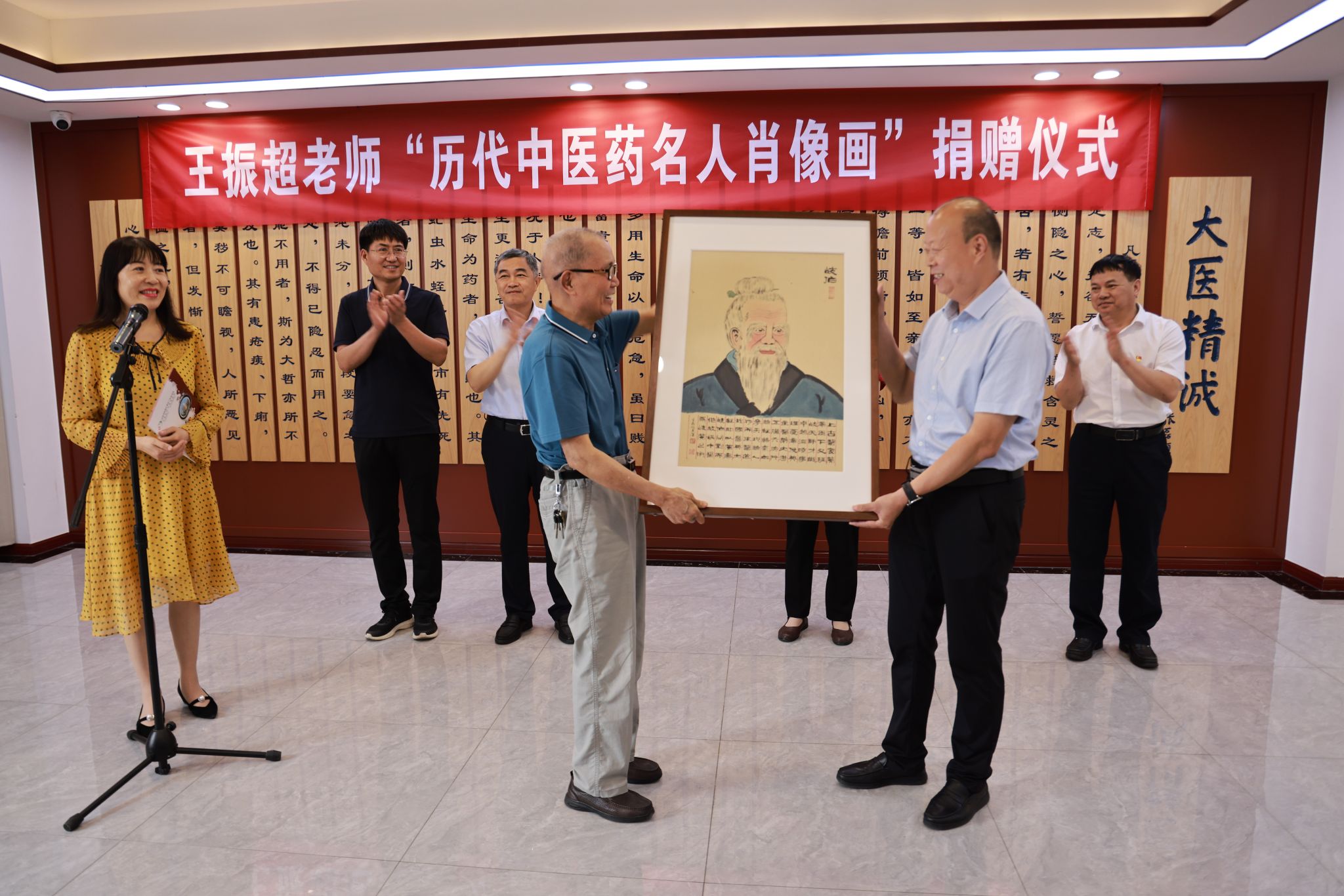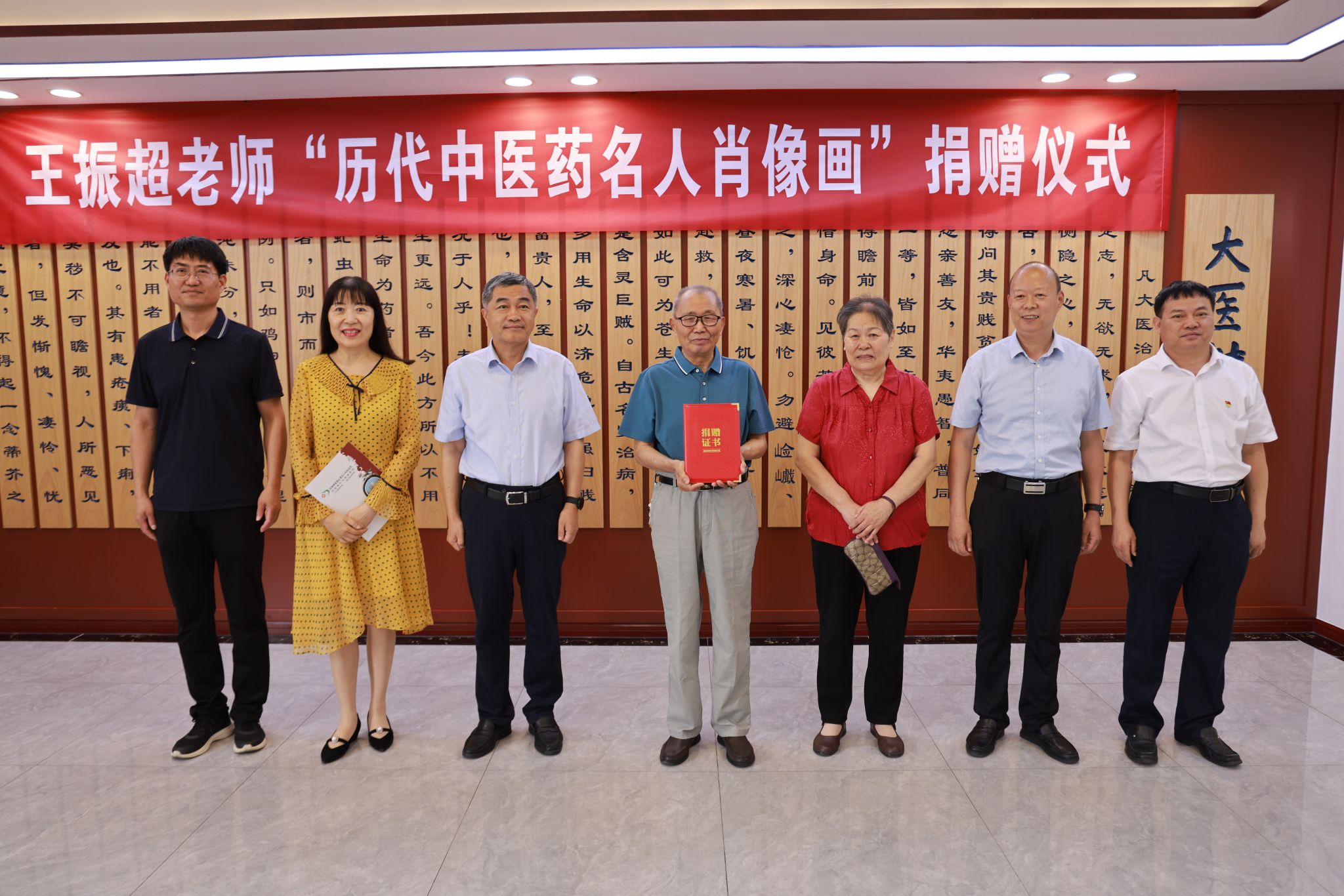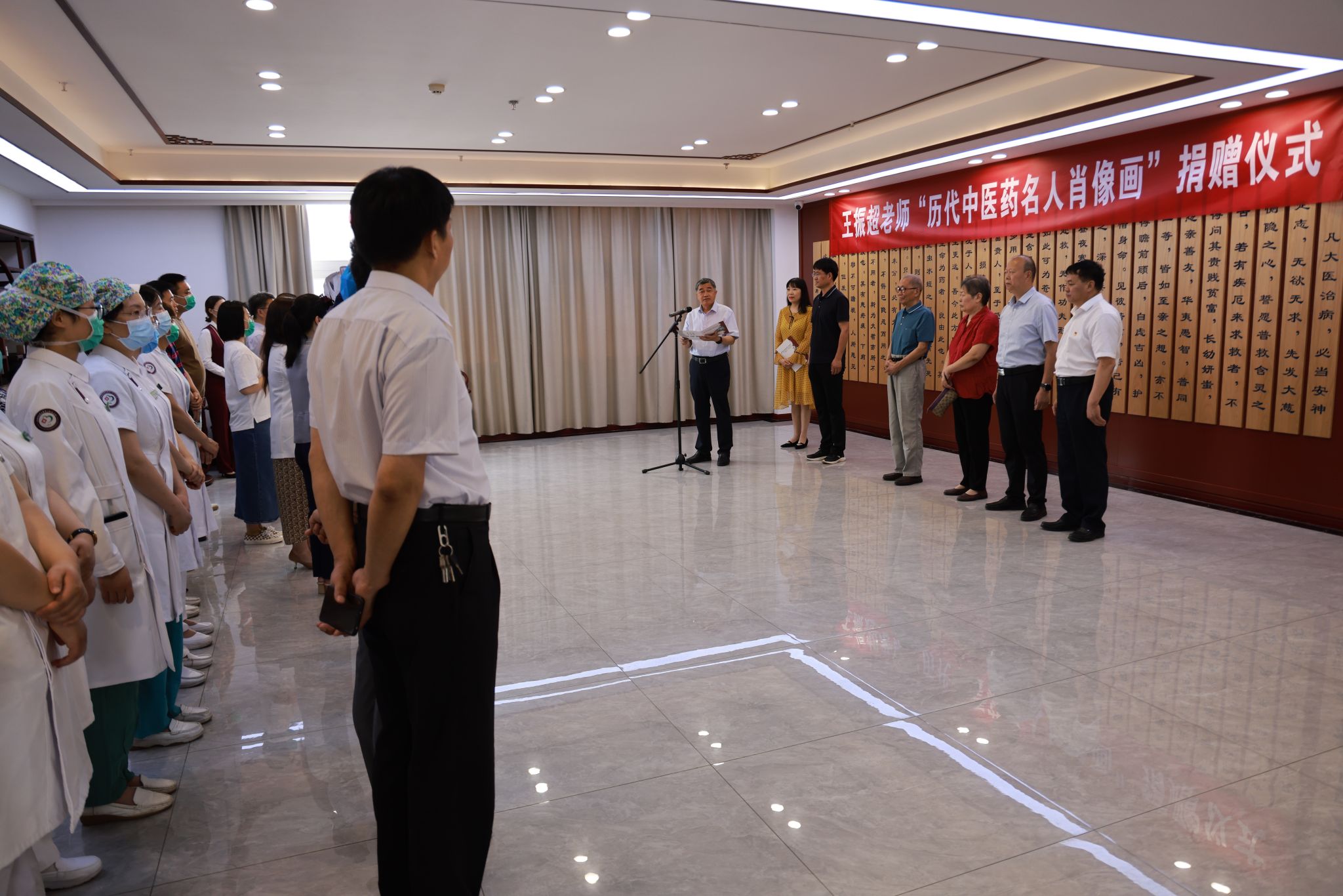 本网讯(文/于诗航 图/田辉 潘向昆 丁妍)2023年6月25日,王振超老师“历代中医药名人肖像画”捐赠仪式在三附院国医馆举行。医院原院长张大伟,医院党委副书记张政、焦钧,党委委员、副院长胡斌,党委委员、工会主席蔡庆春及医院相关部门负责人、医护代表参加捐赠仪式。仪式由焦钧主持。