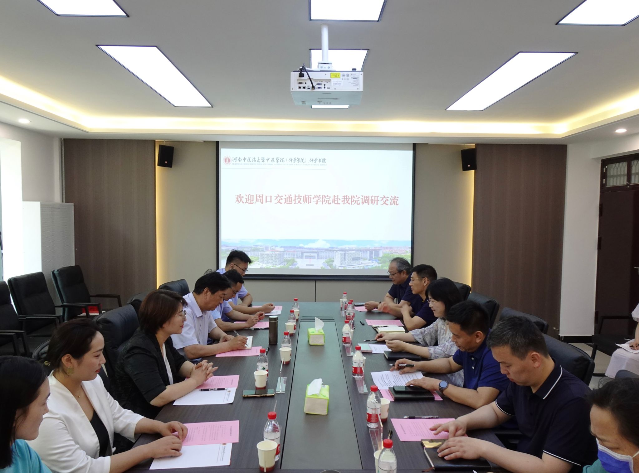 本网讯(文/张蓝熙 图/史占江)2023年6月27日,周口交通技师学院副校长王国炎、陈红梅一行到中医学院(仲景学院)调研交流。leyu·乐鱼(中国)体育官方网站中医学院(仲景学院)院长张瑞,副书记徐里,副院长李宁、刘文礼,中医基础理论教研室主任崔姗姗,温病学教研室主任谢忠礼,方剂学教研室主任龙旭阳,党政办主任刘颖、副主任史占江,教学办主任徐会敏,学工办主任赵申苒参加交流会。会议由徐里主持。