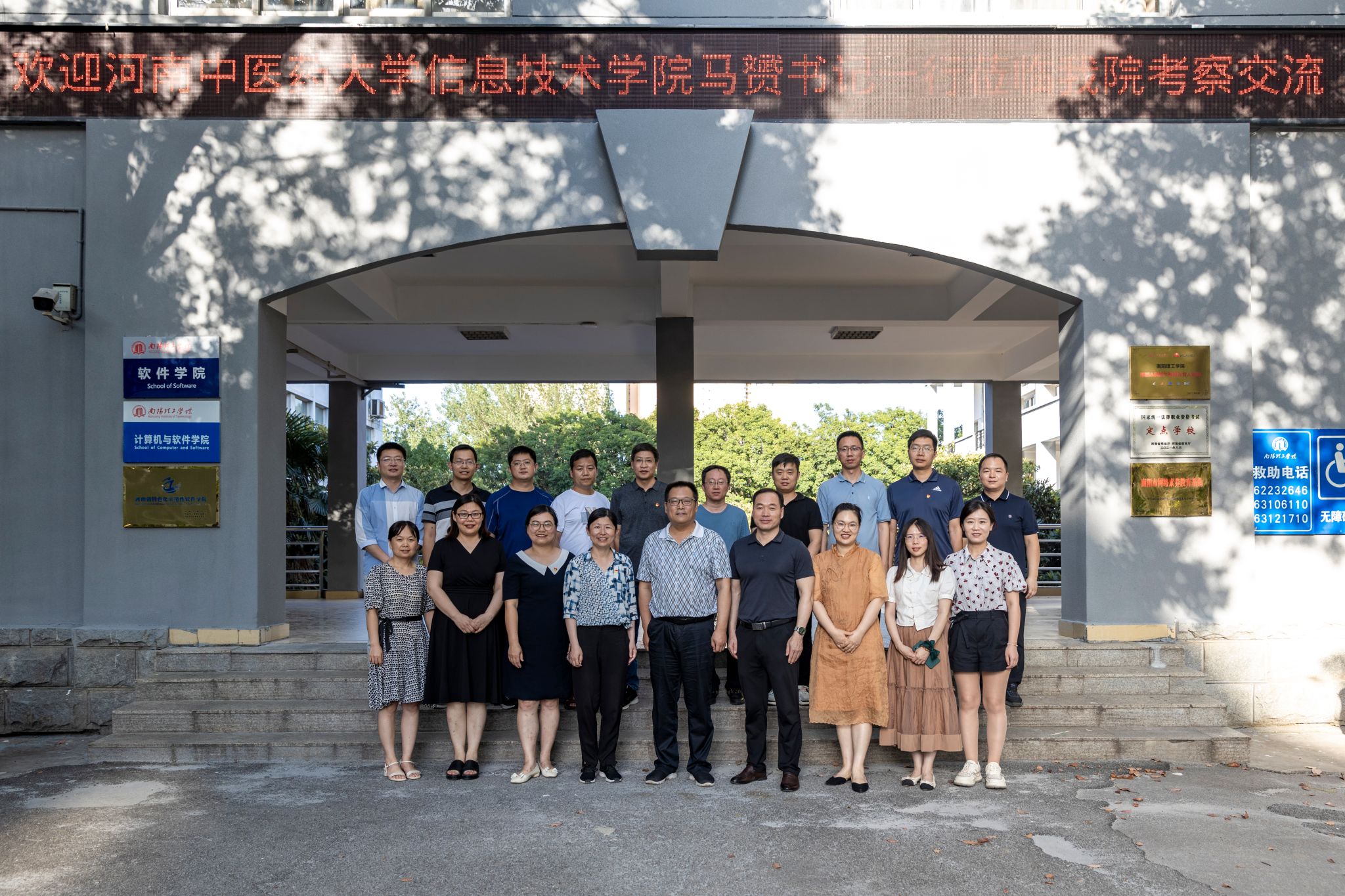 本网讯(文/刘培聪 图/郭寅虎)为深入学习贯彻落实习近平总书记“关于调查研究”的重要论述,2023年7月7日,信息技术学院党委书记马赟、副院长王晓燕带队一行11人赴南阳理工学院计算机与软件学院调研交流。南阳理工学院计算机与软件学院党委书记祝孔涛、院长刘黎明、副书记申玮、副院长邵艳玲携班子成员及相关科室负责人参加座谈交流。会议由祝孔涛主持。