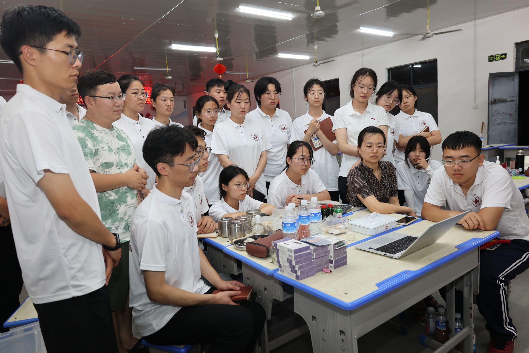 训练有素,神采奕奕展风貌。“三下乡”社会实践活动即是辛勤奉献的过程,也是青年学生自我成长的过程。每天早上7点,服务团志愿者们以一套整齐划一的八段锦唤醒头脑;中午12点,老师和同学们一起盛饭,师生一心,劳动筑基;晚上8点,志愿者们跳团舞来放松身体,强壮体魄;晚上8点半,老师带领召开工作会议,进行一天工作的查漏补缺及分析总结。从一日三餐到洗漱住宿,大家严谨自律、无私坚守,以训练有素的精神风貌展现了河中医青年学子的实践风采。