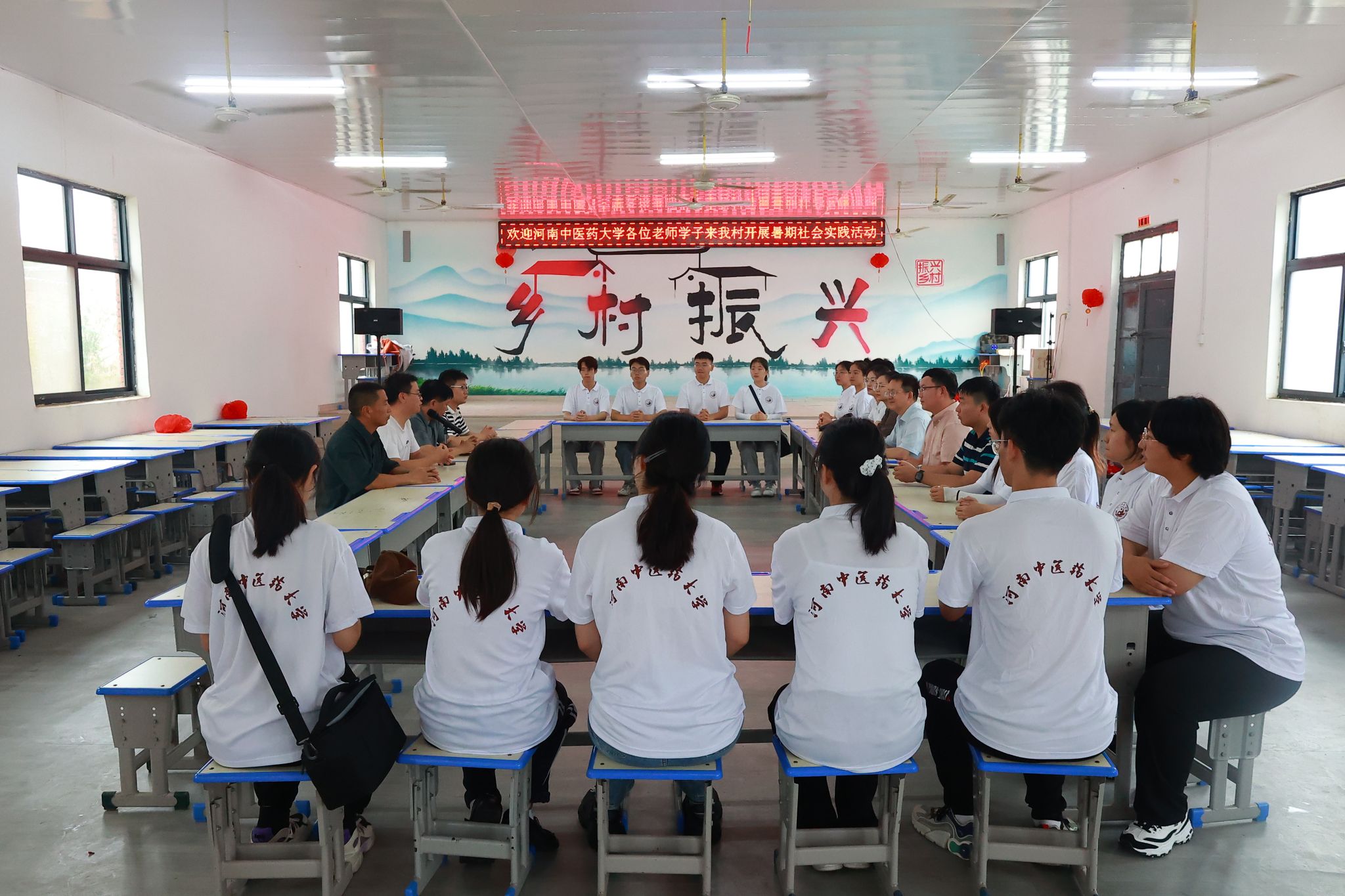 在第一次见面会上,李志轩代表“七彩天使”服务团向当地政府的热情接待表示感谢,并鼓励同学们在田间地头、在街头巷尾、在群众百姓中受教育、树志向、肩重任、作贡献。一是要在实践中增长才干,坚定理想信念,将青春热血投入到为人民服务的工作中;二是在奉献中要勤学苦练,不怕辛苦,练就过硬本领,提升专业水平,上好“大思政课”;三是要在群众中心怀大爱,将医者仁心牢记在心,深入基层、锻炼毅力、培养品格,为当地村民送去健康,为留守儿童打开知识的窗户,以实际行动助力乡村振兴。
