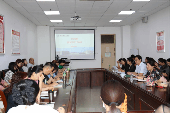副院长毛海燕对全体教师在暑期为迎接教育部本科教育教学审核评估工作所做的努力表示感谢,并对新学期教学工作以及期初教学检查、毕业生论文审查等工作进行了安排。副院长王孺通报了暑期组织新一轮河南省重点学科申报、省级课题立项、智库建设、学院文化长廊建设等情况,并对新学期办公用品采购领用规范化管理进行了安排。