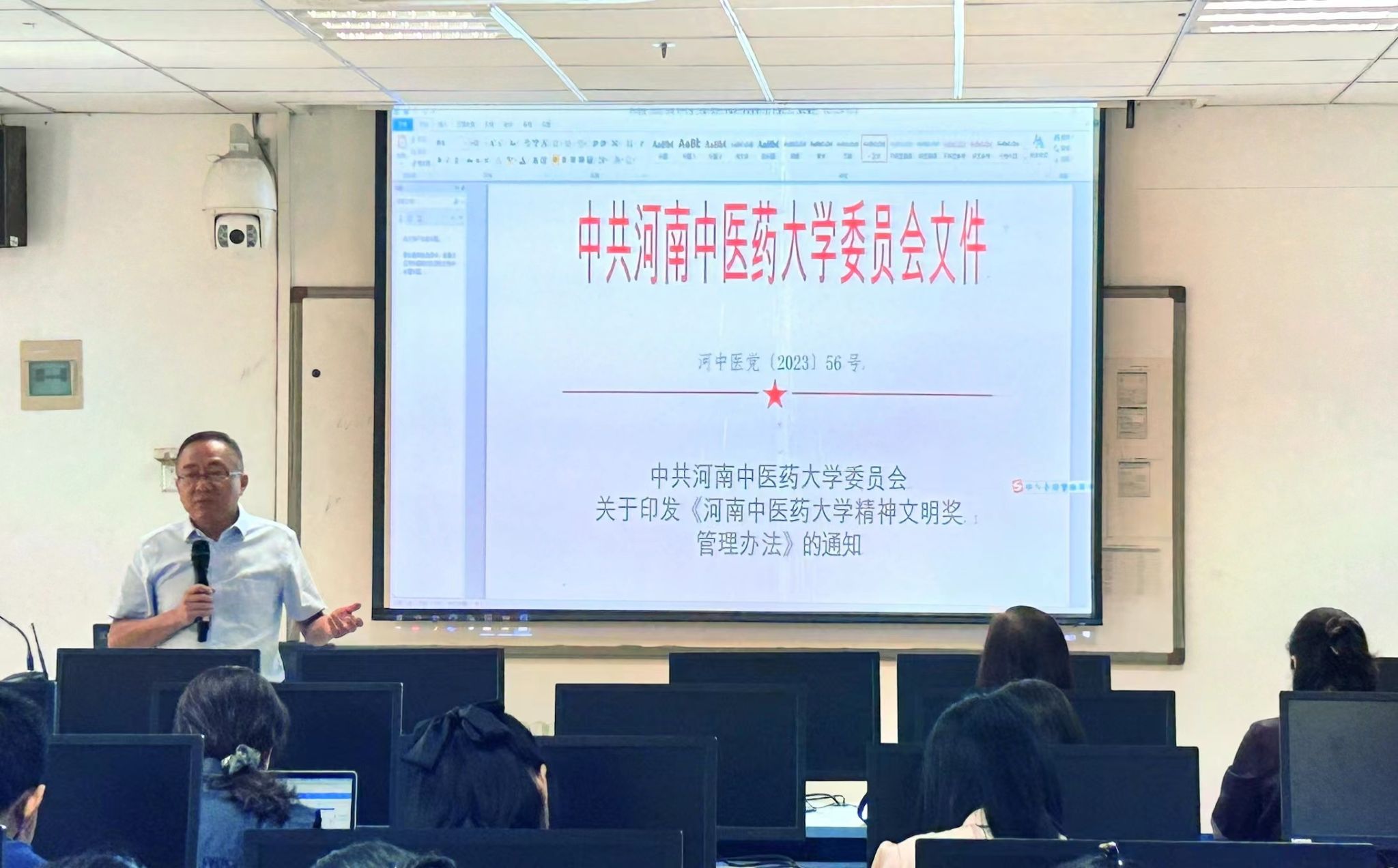党委书记尹丽首先通报了学校巡察组对学院的巡察反馈内容,介绍了假期进行的巡察整改情况。其次,总结了学院开展的主题教育情况。尹丽对新学期工作重点强调了三个方面的内容。一是要做好本科教学审核评估准备工作。要吃透审核评估精神;要准备好迎接学校的督查;要以学校的督查为契机,查漏补缺,迎接教育部的审核评估。二是要进一步加强师德师风建设。要强化教师的政治学习,坚持政治引领;要做好教师的精神引领,引导教师自律自强;要完善监督机制,畅通学院师德师风违规举报三种渠道;要完善考核机制,把月考核和年度考核结合起来。三是要进一步加强学院意识形态工作。要提高站位,高度重视意识形态工作;要深化认识,加强对意识形态工作的理解;要融会贯通,以意识形态工作加强课程思政工作。最后,尹丽以会代训,对全体职工进行了意识形态专题培训。