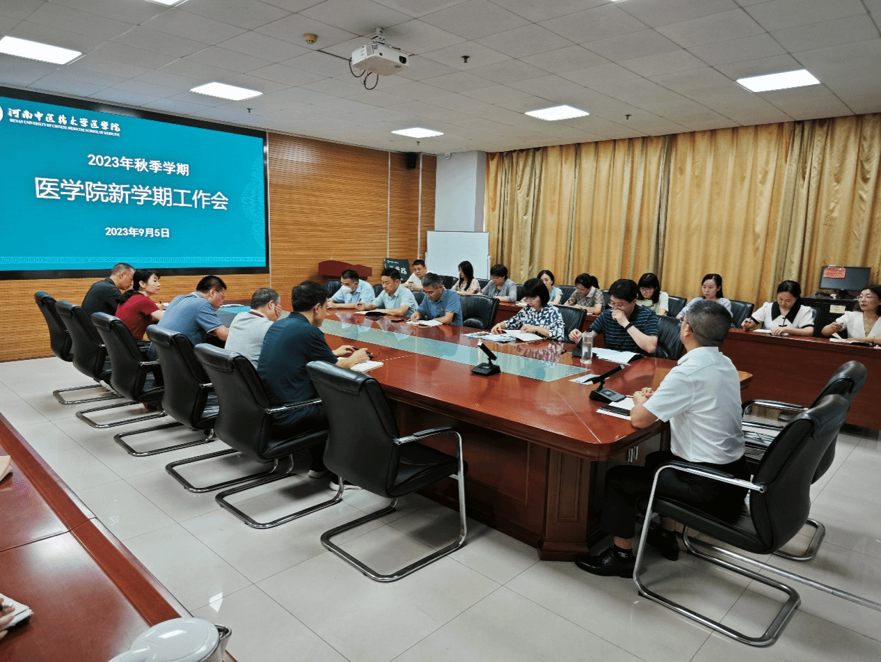 本网讯(文/张慧鹏 图/李光)2023年9月5日,医学院在教学实验楼A447会议室召开2023年秋季新学期工作会。学院领导班子成员,支部书记,科室主任、副主任参会。会议由学院党委书记高剑峰主持。